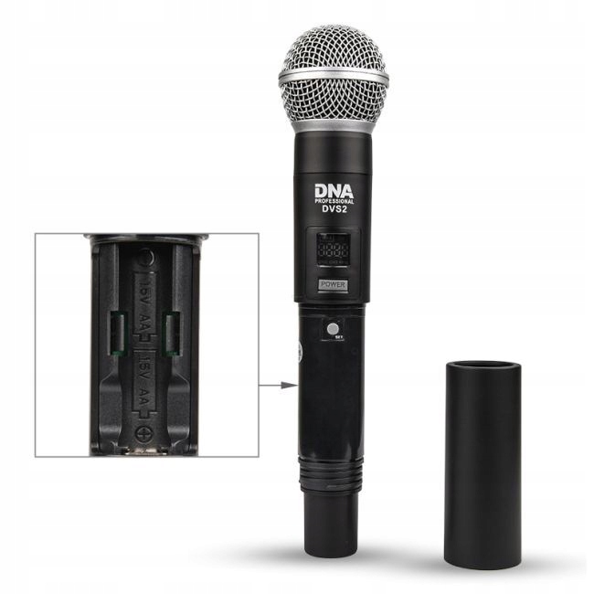 DNA DVS2 — це професійна бездротова звукова система, яка включає два бездротові динамічні мікрофони та базову станцію з кольоровим рідкокристалічним дисплеєм, який є компактним приймачем УВЧ хвиль. Набір відмінно підходить як звукова система для співаків, хорів, музичних гуртів, івент-компаній, ігрових аніматорів, набір мікрофонів для караоке, а також звукова система для різних типів культурно-освітніх установ.