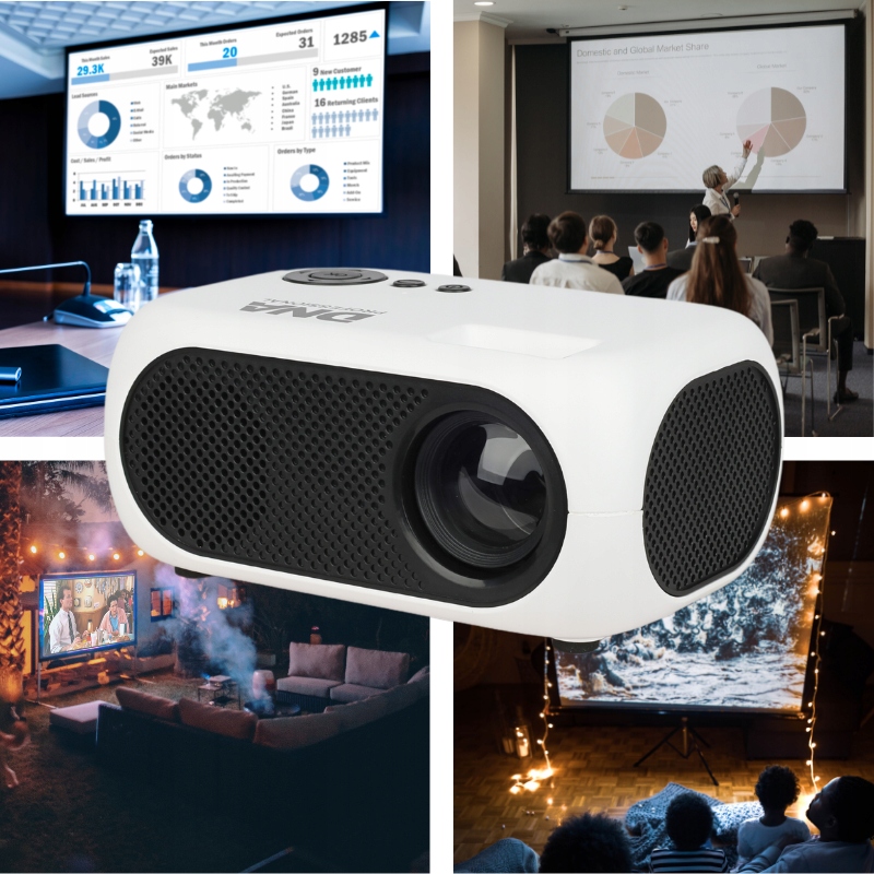 DNA LP2 – це проектор у елегантному білому міцному корпусі (проектор), який ідеально підходить для використання вдома та в офісі, пропонуючи чудову якість звуку та чітке зображення завдяки рідній системі роздільна здатність480x360 і підтримка роздільної здатності до 1080p!