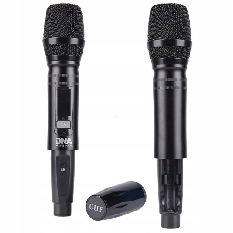 Набір із звуковим мікшером DNA включає 2 динамічних бездротових мікрофона з перемикачем і РК-дисплей, на якому відображається поточний канал, робоча частота та стан заряду акумулятора. Кожен передавач живиться від 2 батарейок типу АА по 1,5 В, які забезпечують мікрофонам до 6 годин роботи. Великий радіус дії, широка пропускна здатність і довгий час роботи роблять їх ідеальними для будь-якої ситуації.