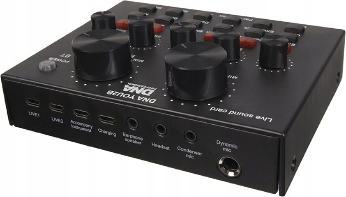 звукова карта ДНК You2b є зовнішнім аудіо -інтерфейсом та широким багатоефектом в одному. [ вбудований акумулятор дозволяє йому працювати навіть в умовах без джерела живлення .
