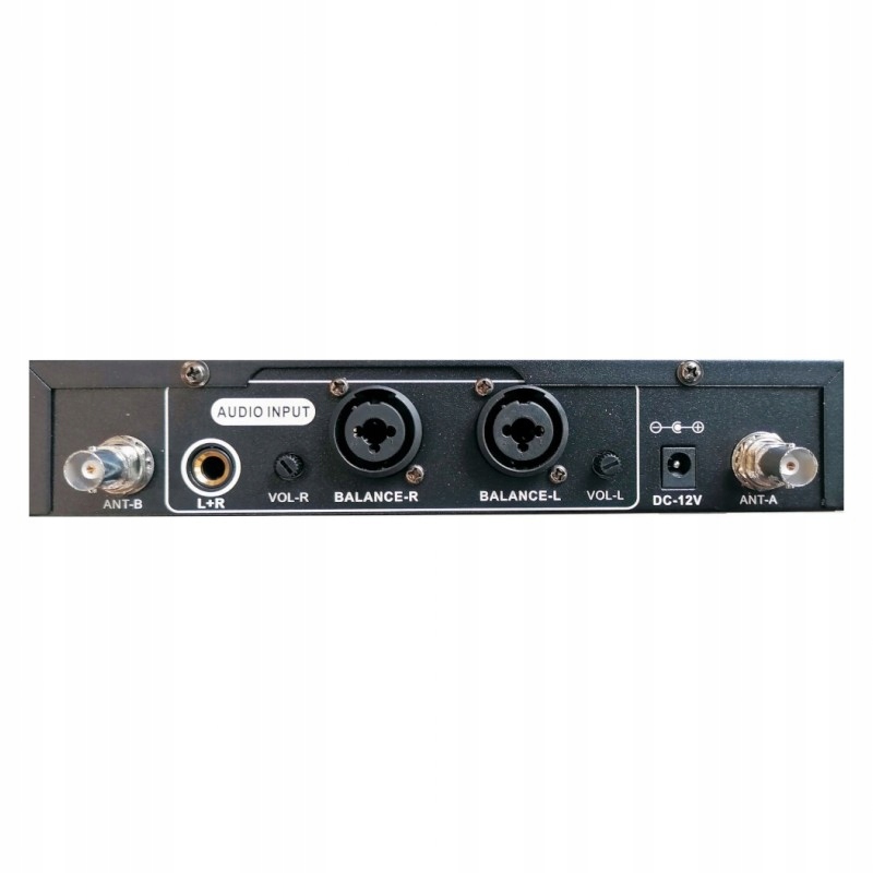 Друга частина системи – передавач радіохвиль із діапазоном частот від 518 до 542 МГц. На задній частині його корпусу розташовані два комбінованих входу - XLR/Jack для лівого (L) і правого (R) каналів разом з поворотними потенціометрами гучності, вхід стереоджек (6,3 мм), гніздо для підключення джерела живлення ( включено). ) і два роз’єми для антени BNC. На передній частині розташовані перемикач живлення, два роз’єми для навушників з потенціометрами гучності та панель управління з кнопками «Вгору», «Вниз», «Установити» та чітким РК-дисплеєм. Він показує поточні параметри системи звукового моніторингу, такі як рівень якості сигналу, встановлену робочу частоту та вибраний канал передачі даних.