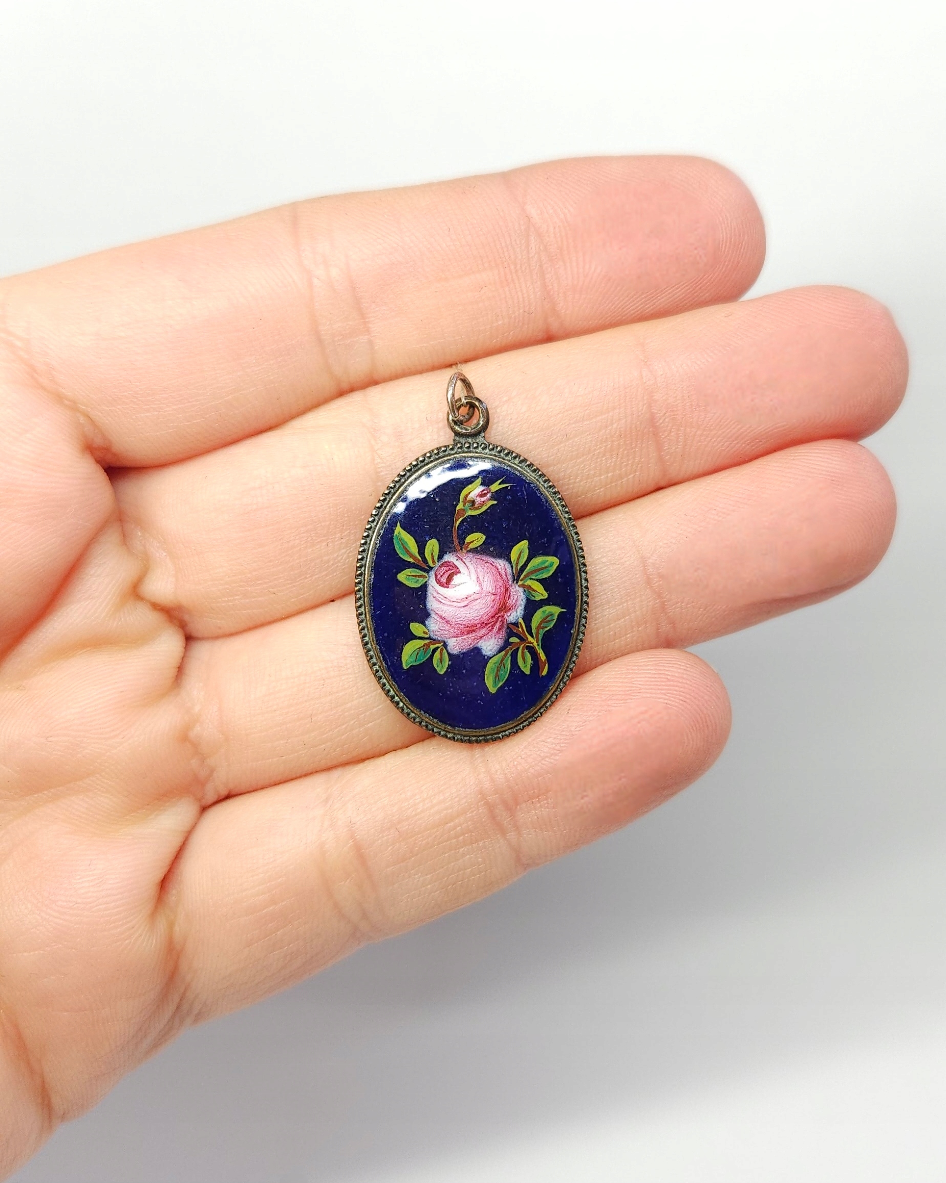 До -во -воєнний кулон з трояндою, латунь, рукою -пофарбована емаль