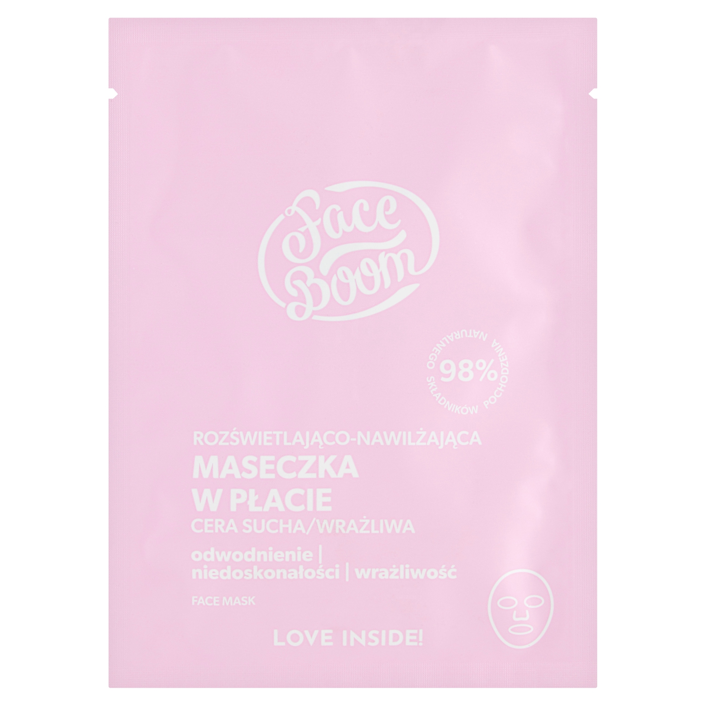 натуральна, освітлення та виклик маски для обличчя, призначену для всіх типів шкіри, зокрема сухими, зневодненими, втомленими та без світіння. Завдяки вмісту натуральних інгредієнтів, відомих своїми зволожуючими та яскравими властивостями, освітлює та вирівнює тон шкіри , що підтримує природну регенерацію. Після використання обличчя здається більш рівномірним, сяючим, сповненим блиску ефектом "спалаху"! Завдяки використанню фібрину при використанні шкіри є можливість довше спілкуватися з діючими інгредієнтами, виготовленими з природної формули, а спеціально відповідна форма аркуша забезпечує його адгезію до обличчя.