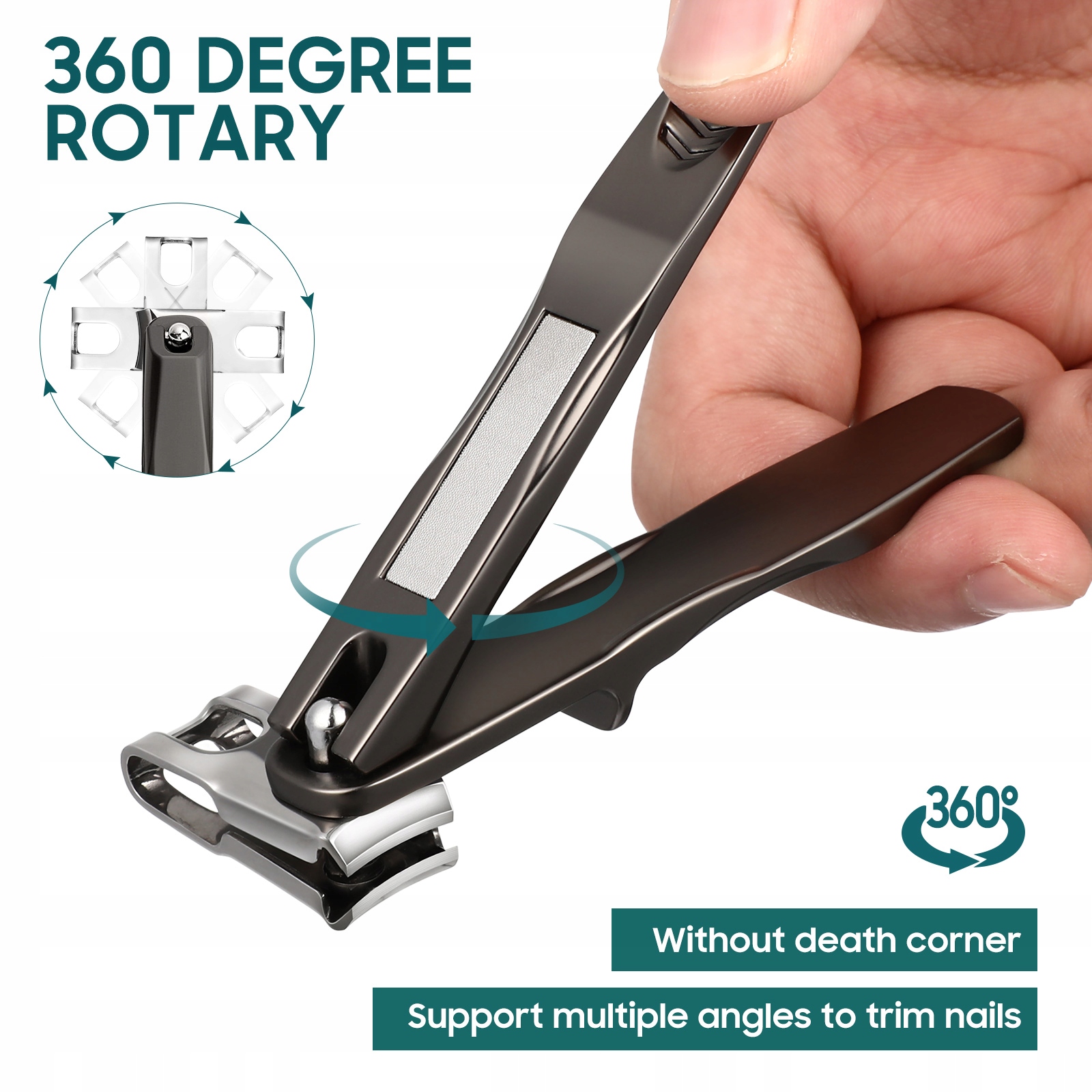 ✅Обертова кусачка для нігтів — це революційний дизайн, завдяки якому підстригати нігті легше, ніж будь-коли. Завдяки унікальній функції повороту ви можете легко використовувати кусачку для нігтів під ідеальним кутом. Гострий матеріал із нержавіючої сталі дозволяє легко стригти нігті без пилки.