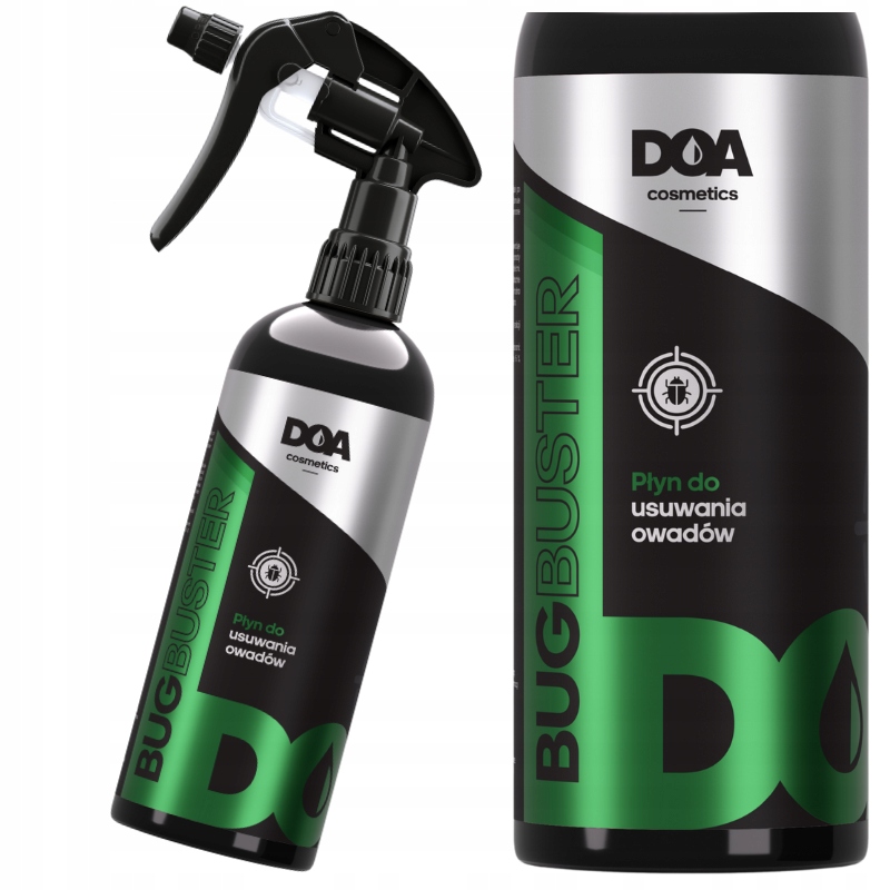 DOA Bug Buster for insects — спеціалізована рідина об'ємом 500 мл, призначена для швидкого та ефективного видалення стійких плям від комах з фарби, вікон, пластику та фар автомобіля. Його м’яка, але ефективна формула не потребує очищення та безпечна для всіх поверхонь, не спричиняючи смуг, подряпин чи пошкоджень. Продукт готовий до використання та легко наноситься завдяки зручному розпилювачу - просто розпиліть забруднене місце, зачекайте 1-2 хвилини, потім протріть тканиною або змийте водою.