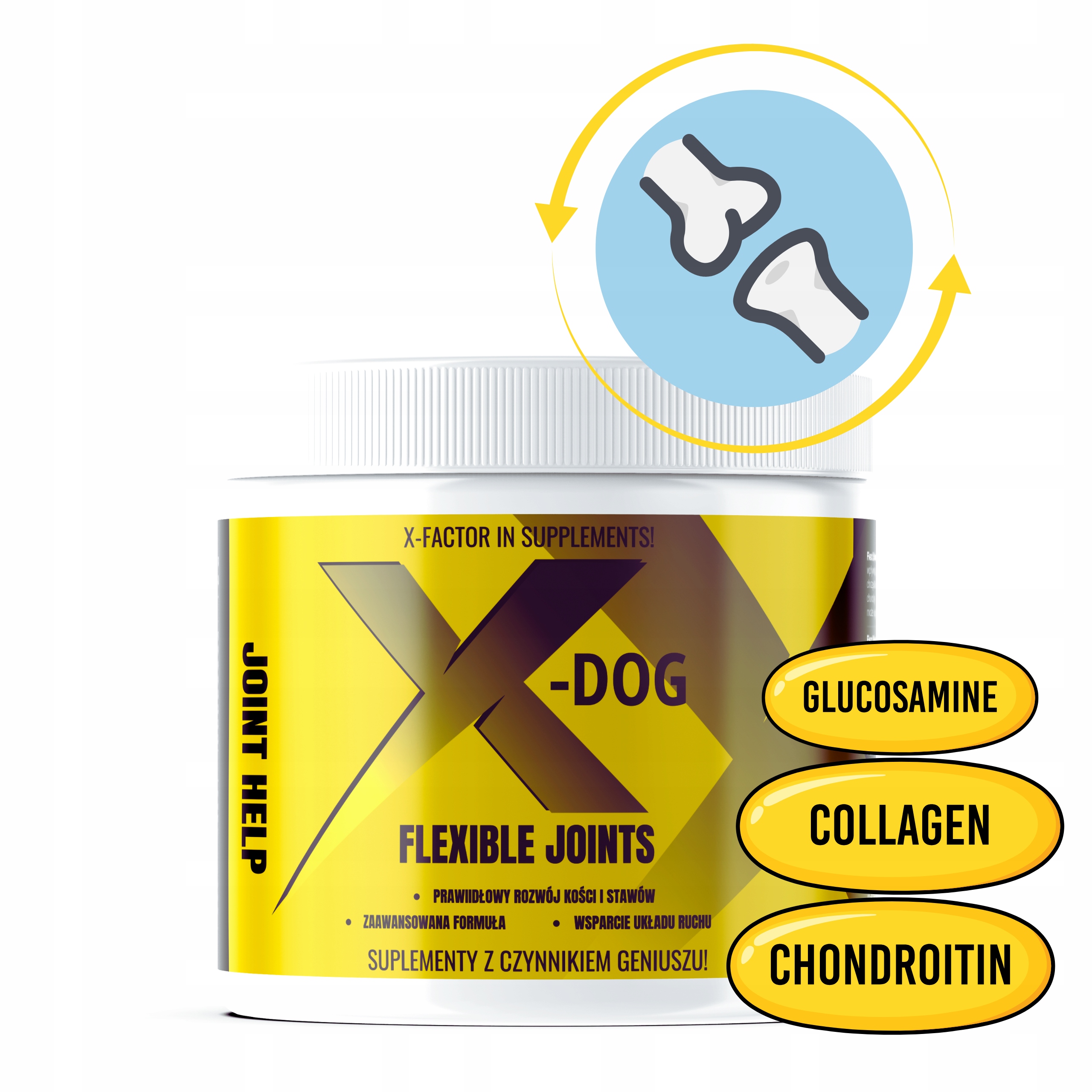 ⭐X-DOG flexible joints можна вводити у разі наявних захворювань суглобів і хребта, а також з профілактичною метою, особливо у собак великих порід, схильних до дисплазії, спондильозу та дегенерації суглобів. Також рекомендується для активних собак, які можуть постраждати від травм і перевантажень опорно-рухового апарату. Добавка також може бути показана собакам дрібних порід і собакам, які страждають від колапсу трахеї або колінних чашечок.