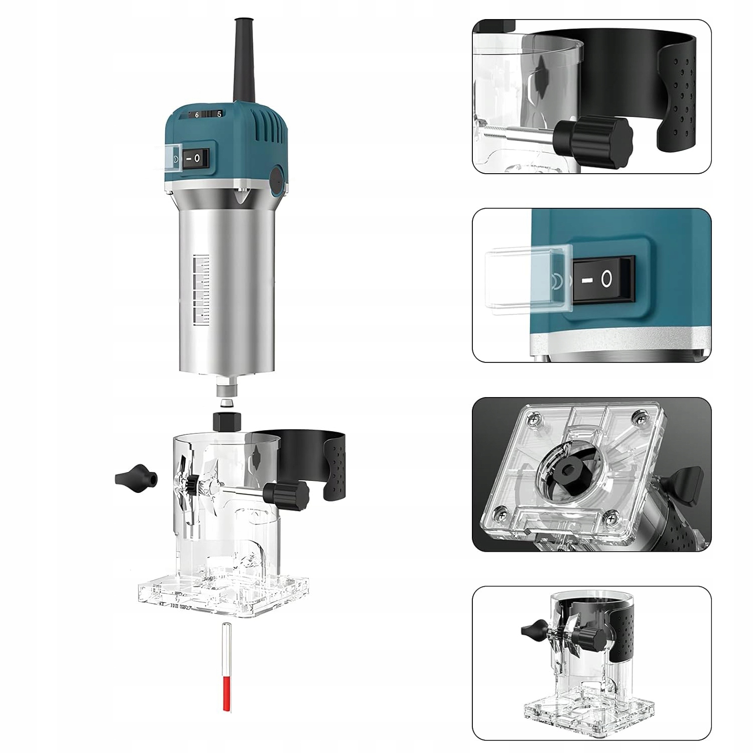 - Цей електричний кромкоріз широко використовується в деревообробці, столярній справі, ремісництві, зрізанні фасок, канавок, фінішній обробці поверхонь, вирізанні кривих, стругання дерев’яних країв, обробка візерунків на пластикових дошках, дерев’яному шпоні та інших подібних матеріалах для саморобки.