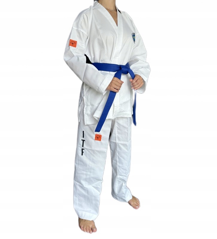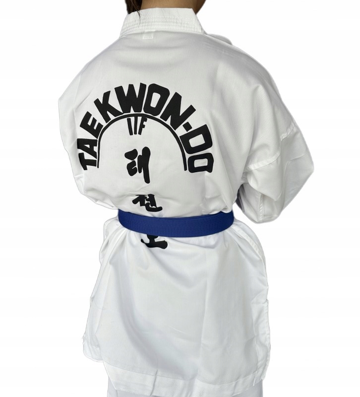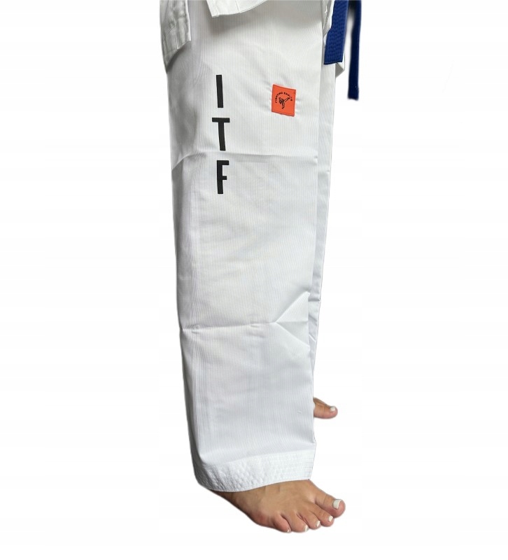 На спині напис тхеквондо, а на штанині абревіатура «ITF».