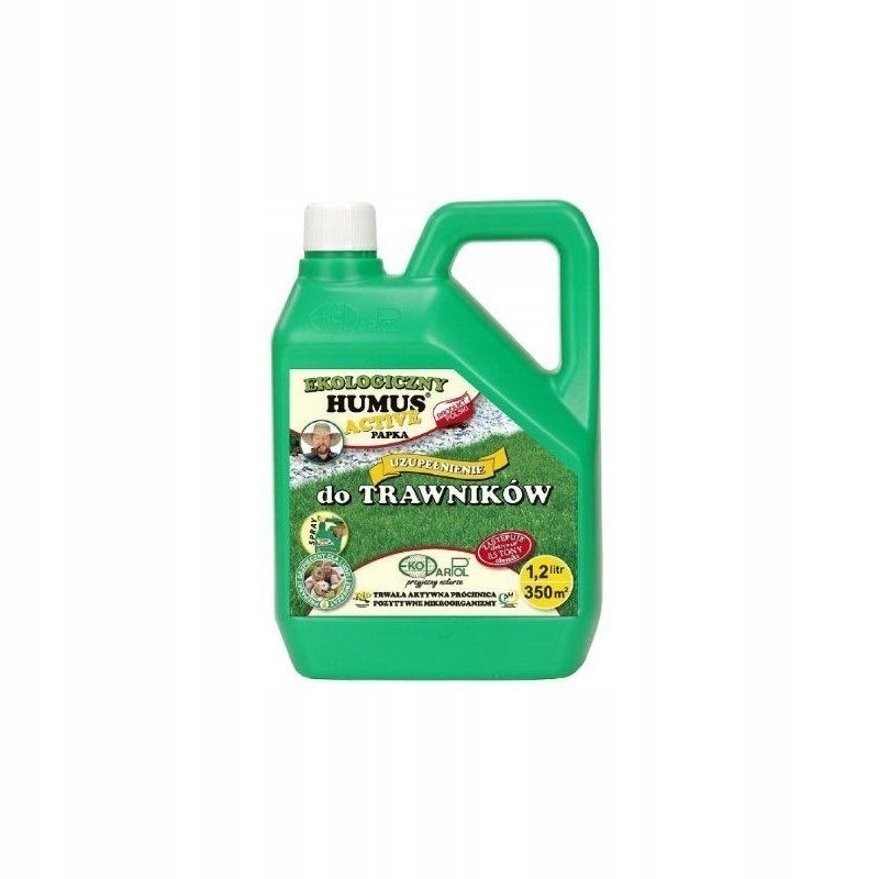 Поліпшувач ґрунту ГУМУС АКТИВ ПАПКА для газонів призначений для правильного розвитку та догляду хороший стан газонів на присадибних ділянках і присадибних ділянках. При систематичному застосуванні забезпечує швидке, інтенсивне зелене забарвлення трави, належну густоту та високу цілісність. Дослідження продукту EkoTech за програмою ЄС доводять, що 2 л HUMUSU ACTIVE ефективно замінює принаймні 1 тонну гною та дає більше на багатьох рівнях, оскільки гній не містить постійного гумусу чи такої кількості бактеріальних культур .