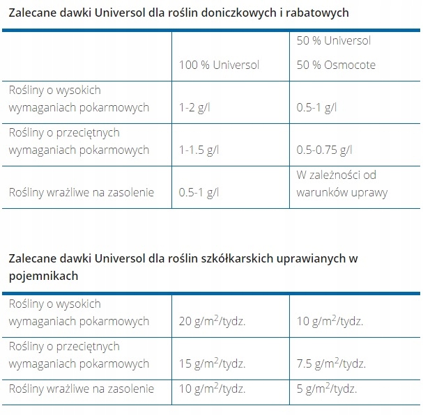 Перед першим використанням Universol або при зміні використовуваних доз ми рекомендуємо протестувати його на невеликій площі вирощування. Через різні умови вирощування поза нашим контролем ICL не несе відповідальності за негативні наслідки використання добрив.