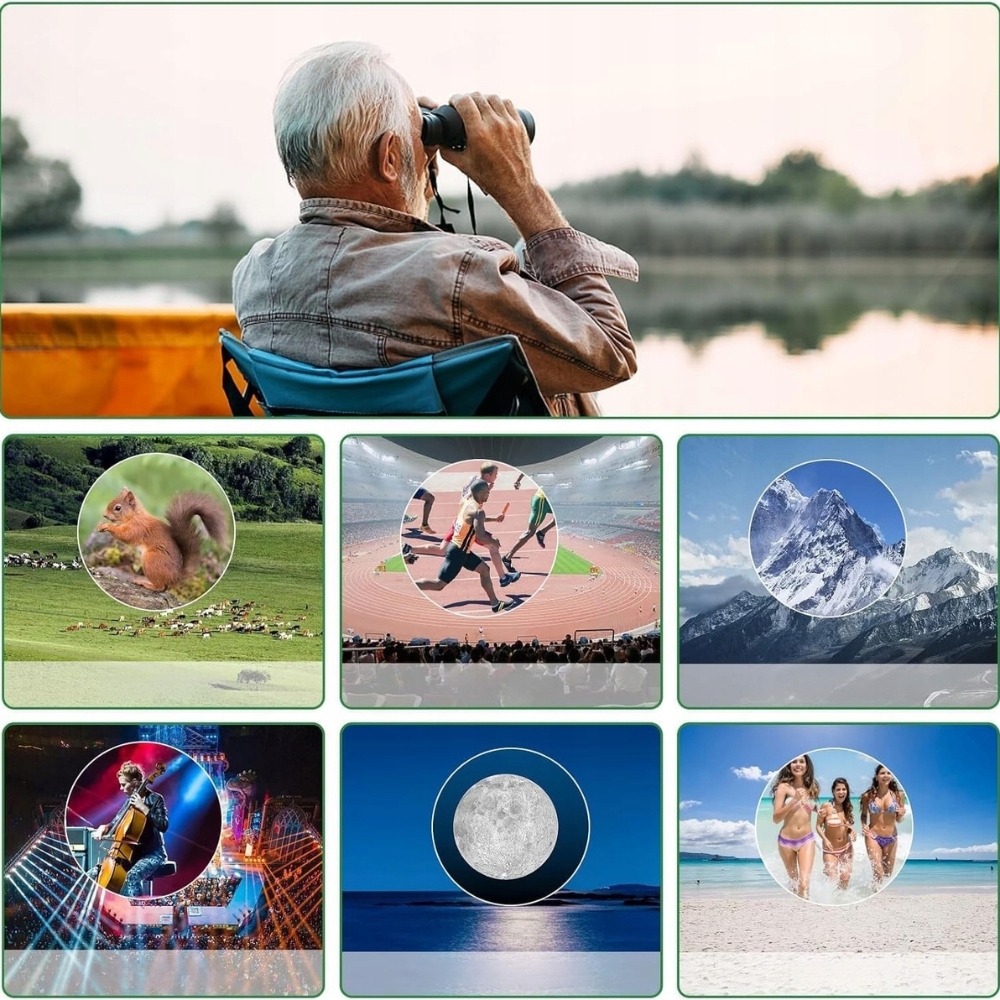 - Застосування: спостереження за птахами, концерти, спорт, подорож