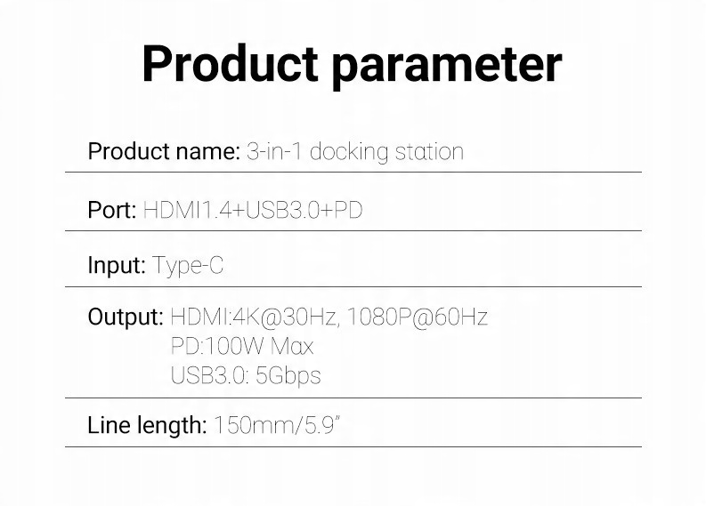 Портативна 3-х в 1-х док-станційній станції USB-C з телевізором HDTV 4K 30 Гц, швидка передача USB 3.0, швидка зарядка PD 100 Вт. Підтримуйте 3 порти, підключені одночасно, чудова альтернатива іграм та роботі. З розміром кишені та легким дизайном ви можете покласти його в кишеню і взяти його скрізь, як вам подобається.