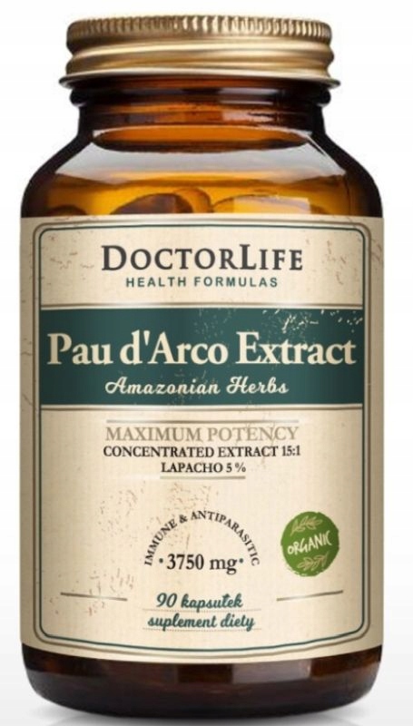 Pau d`Arco Doctor Life містить екстракт органічної внутрішньої кори з високою концентрацією та дією 15:1. Екстракт стандартизований, щоб містити 5% активного інгредієнта - Лапахолу. Одна капсула екстракту еквівалентна 3750 мг (3,75 г) кори, що відповідає майже 8 капсулам (х 500 мг) звичайної подрібненої кори.Наші інноваційні екстракти набагато цінніші, ніж просто подрібнена рослина в капсулах, оскільки містять кілька разів перевищує підтверджену кількість біоактивних частинок. Щоб досягти такого ж ефекту, як і екстракт, потрібно споживати набагато більше капсул порошкоподібної рослини.