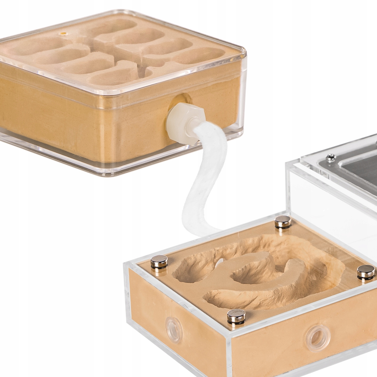 ➡️Додаткове гніздо для кожного формікаріуму . Він має стандартне з’єднання труб 8 мм. Прозорий герметичний контейнер містить порожнисті тунелі та камери зі спеціального матеріалу, який довго утримує вологу. Завдяки цьому ви можете залишити мурах позаду та безпечно вирушити навіть у довшу відпустку.