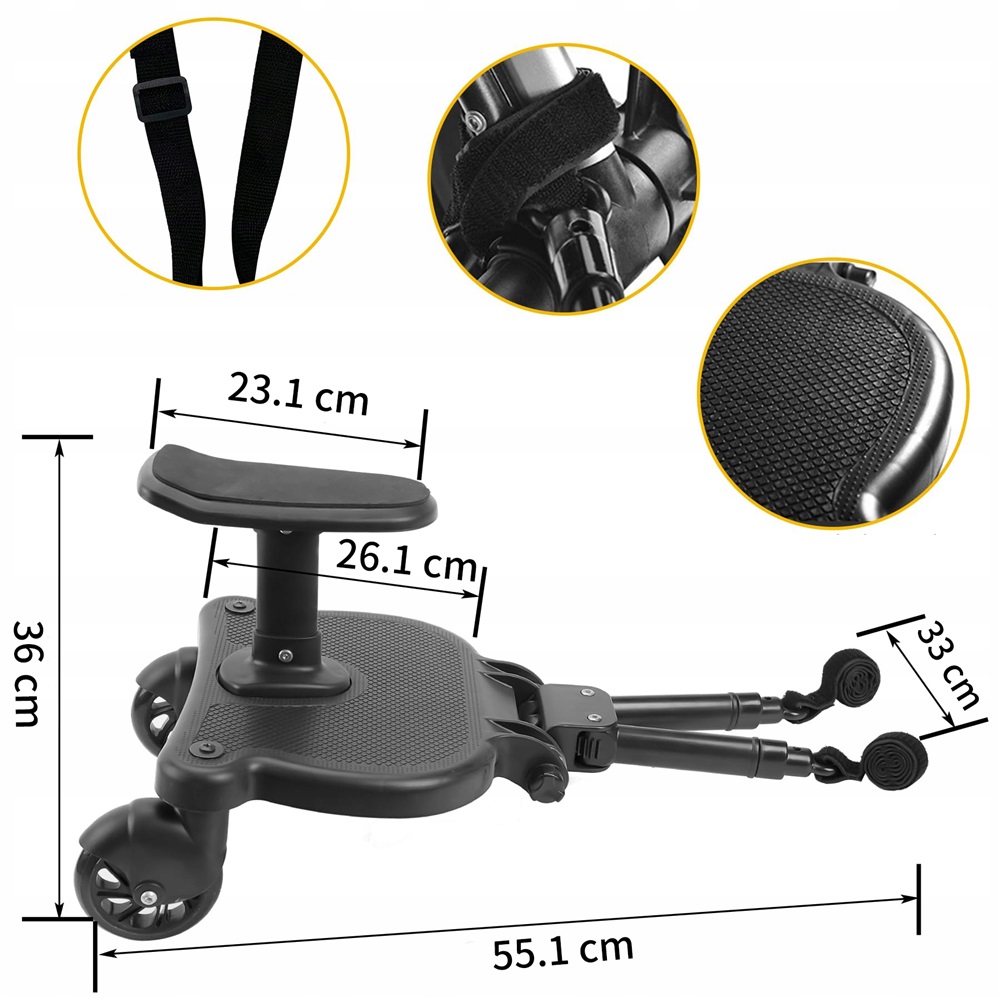 ДОДАТКОВА КОЛЯСКА ПЛАТФОРМА СТОЯЧА З СИДІННЯМ УНІВЕРСАЛЬНА ЧОРНА