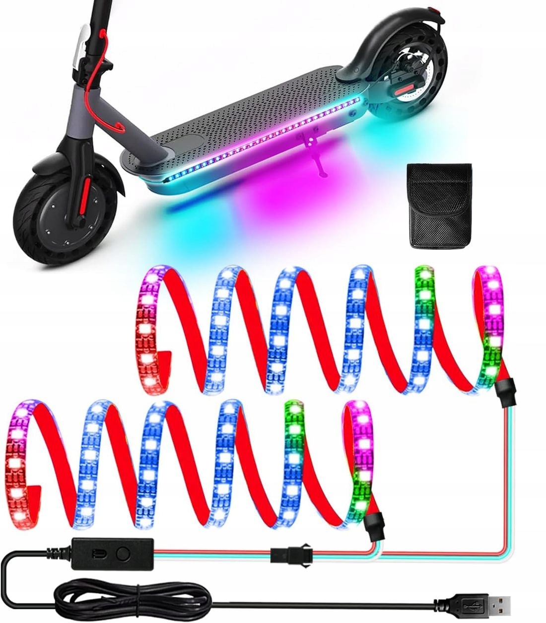 Цей набір включає дві світлодіодні смужки RGB , модуль акумулятора та дистанційне управління , завдяки якому ви можете легко змінити зовнішній вигляд скутера одним клацанням.