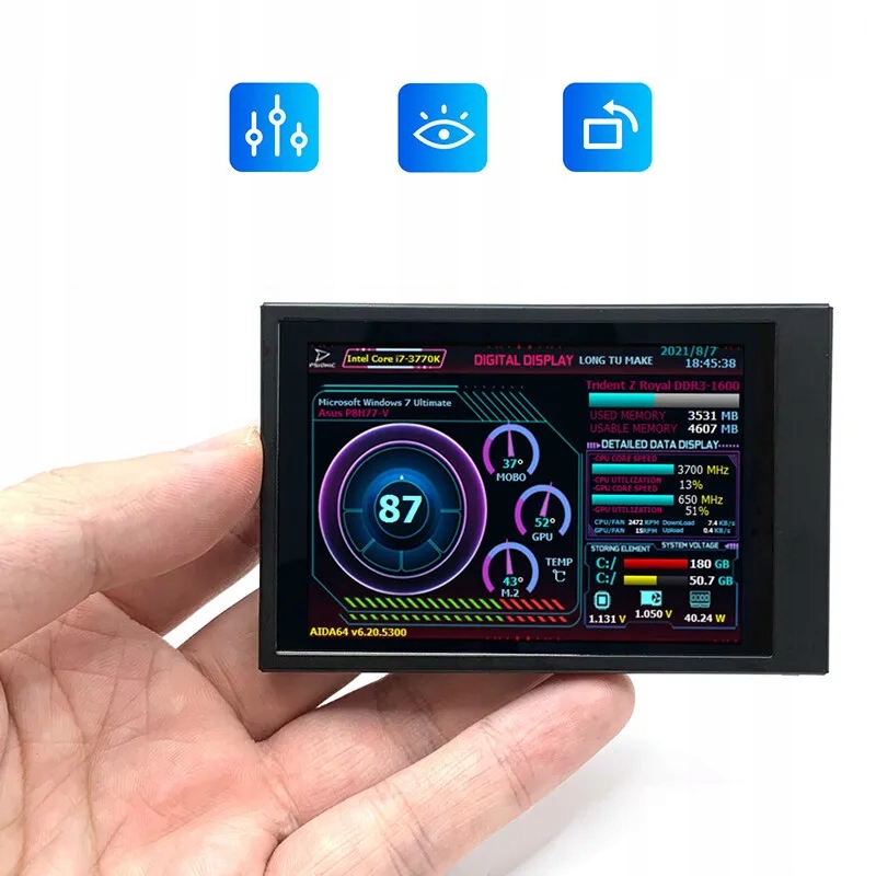 3,5-дюймовий додатковий IPS-екран для комп’ютера, ноутбука чи ноутбука завданням якого є моніторинг системи ПК AIDA64.
