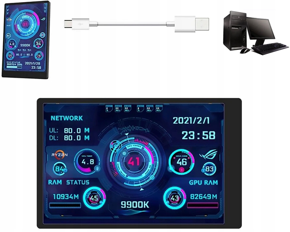 Додатковий екран 3.5'' IPS USB C LCD монітор CPU GPU AIDA64