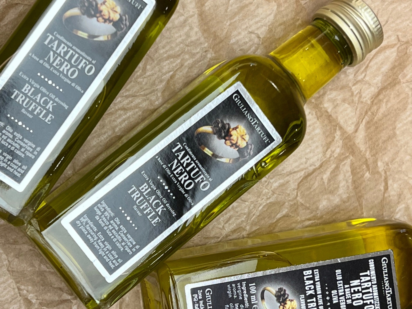Ми запрошуємо вас придбати італійську олію з ароматом трюфеля. Смак трюфелів дуже простий у використанні і можна поєднувати з декількома стравами для поліпшення смаки. • макарони, рис, ризотто та полента,