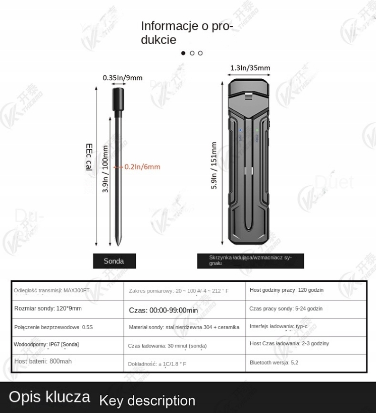 Бездротовий термометр гарантує відмінні результати приготування їжі, усуваючи ризик відмови або спалювання страви. Він економить час, що дозволяє вам зосередитись на тому, що дійсно важливе - соціальні відносини та задоволення від їжі. Це також інвестиція в здоров'я, оскільки належним чином підготовлене м'ясо не тільки смачне, але й безпечне для споживання.