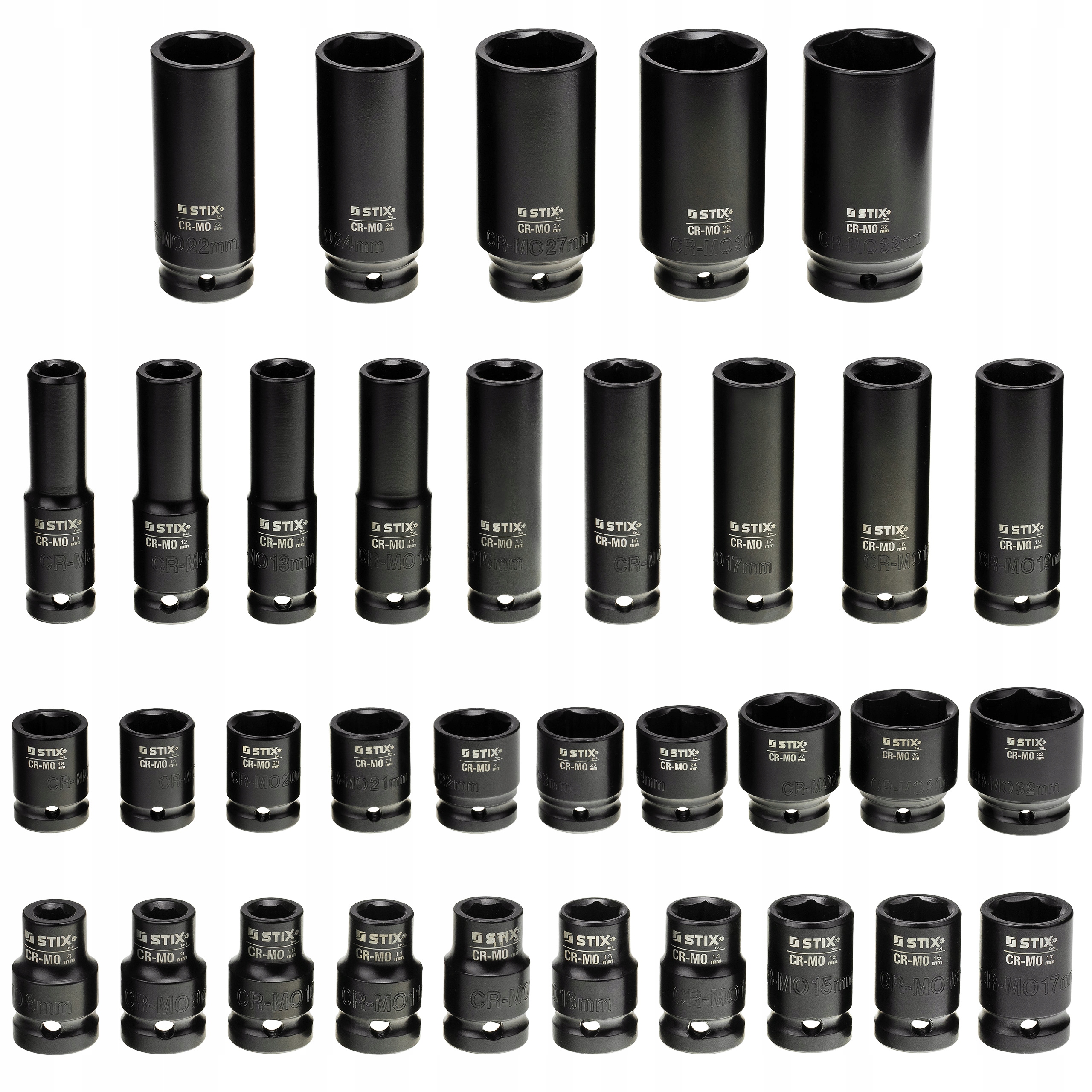 Капки довгих і коротких ударів 1/2 "STT CR -MO Series 10 - від 8 до 32 мм у валізі - інструмент Stix