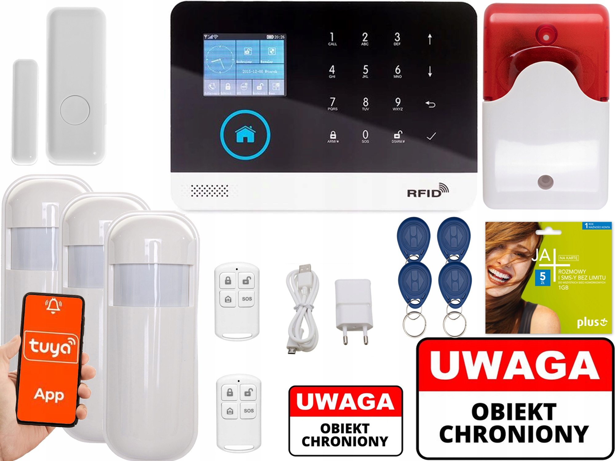 Систему сигналізації GSM можна вимкнути/увімкнути під охорону за допомогою клавіатури панелі сигналізації та невеликих компактних пультів дистанційного керування, RFID-карт, програми Smart Life на телефоні або дистанційно за допомогою звичайного телефонного дзвінка.