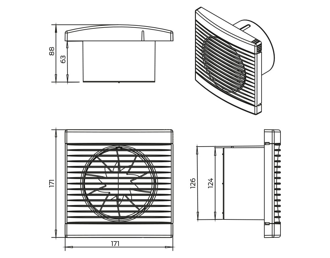 doshel play fan Ø125 s був розроблений для ефективної та тихої вентиляції в кімнатах для життя та комунальних послуг. Завдяки місткості 150 м3/год та максимальній швидкості двигуна при 1850 об/хв. забезпечує ефективні вологу та неприємні запахи. Пристрій працює надзвичайно тихо - рівень шуму становить лише 35 дБ (а) , що робить його майже непомітним під час повсякденного використання. Потужність 230 В/50 год з низьким споживанням енергії ( 15 Вт ) робить його економічним вибором, а міцний кульковий підшипник та матеріал ABS гарантують довге життя. Завдяки класу захисту IPX4 та ІСЛІШЕННЯ ІНСУЛАТУВАННЯ та вентилятор безпечно використовувати навіть у вологих умовах, таких як ванні кімнати або кухні.