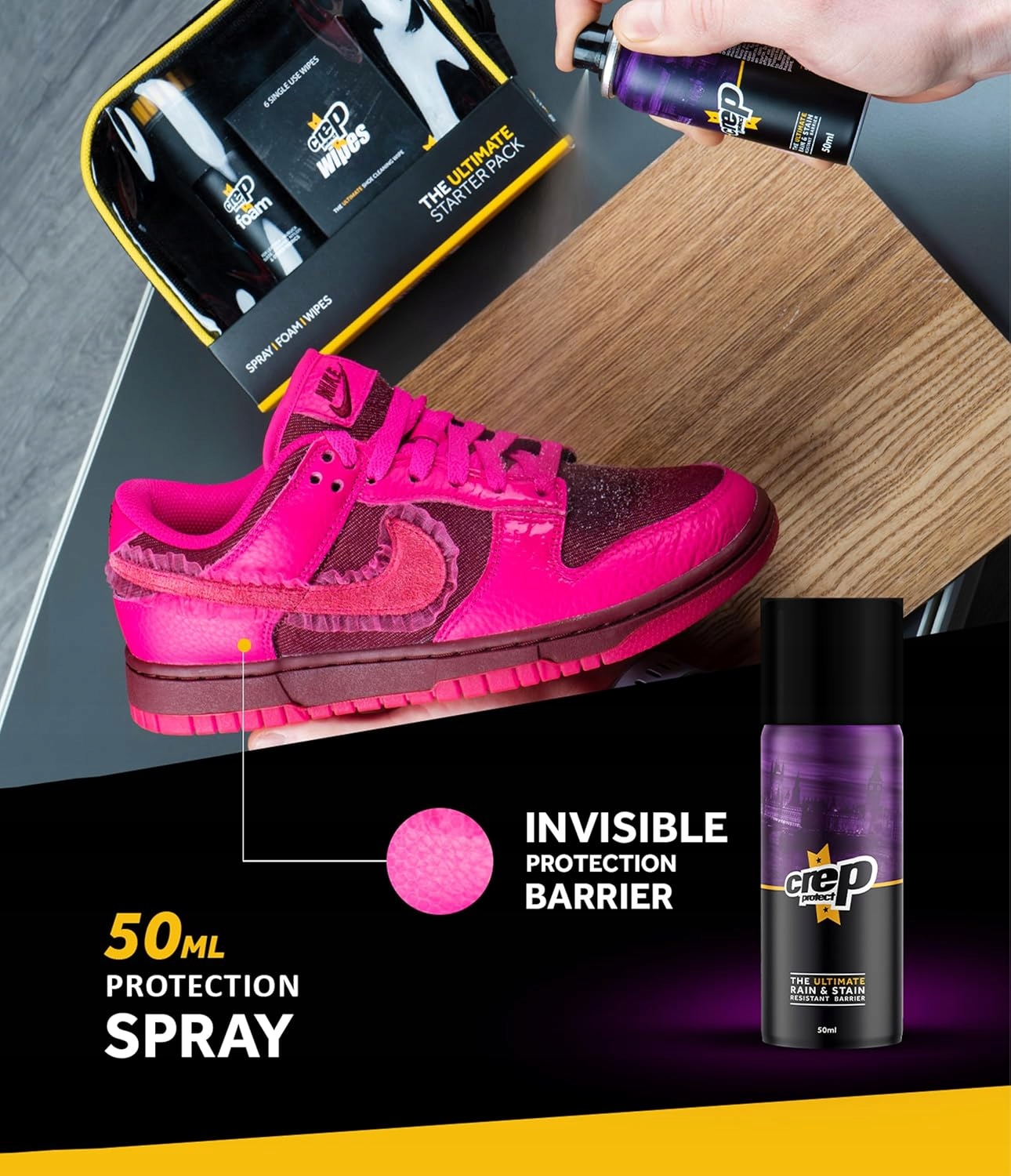 Це найкращий пакет для захисту взуття. Завдяки поєднанню зручного у дорозі спрею Crep Protect, серветок і піни ви зможете довше зберегти свіжість свого взуття. Інноваційна формула спрею створює невидимий бар'єр, який відштовхує рідини та бруд, а серветки чудово видаляють увесь бруд та пил, які вже осіли на взутті. Нарешті, піна забезпечує максимальний захист від пошкодження водою та зміни кольору. Завдяки цьому комплексному пакету Crep Protect ви зможете зберегти своє взуття в первозданному стані – незалежно від того, куди вас занесе життя.