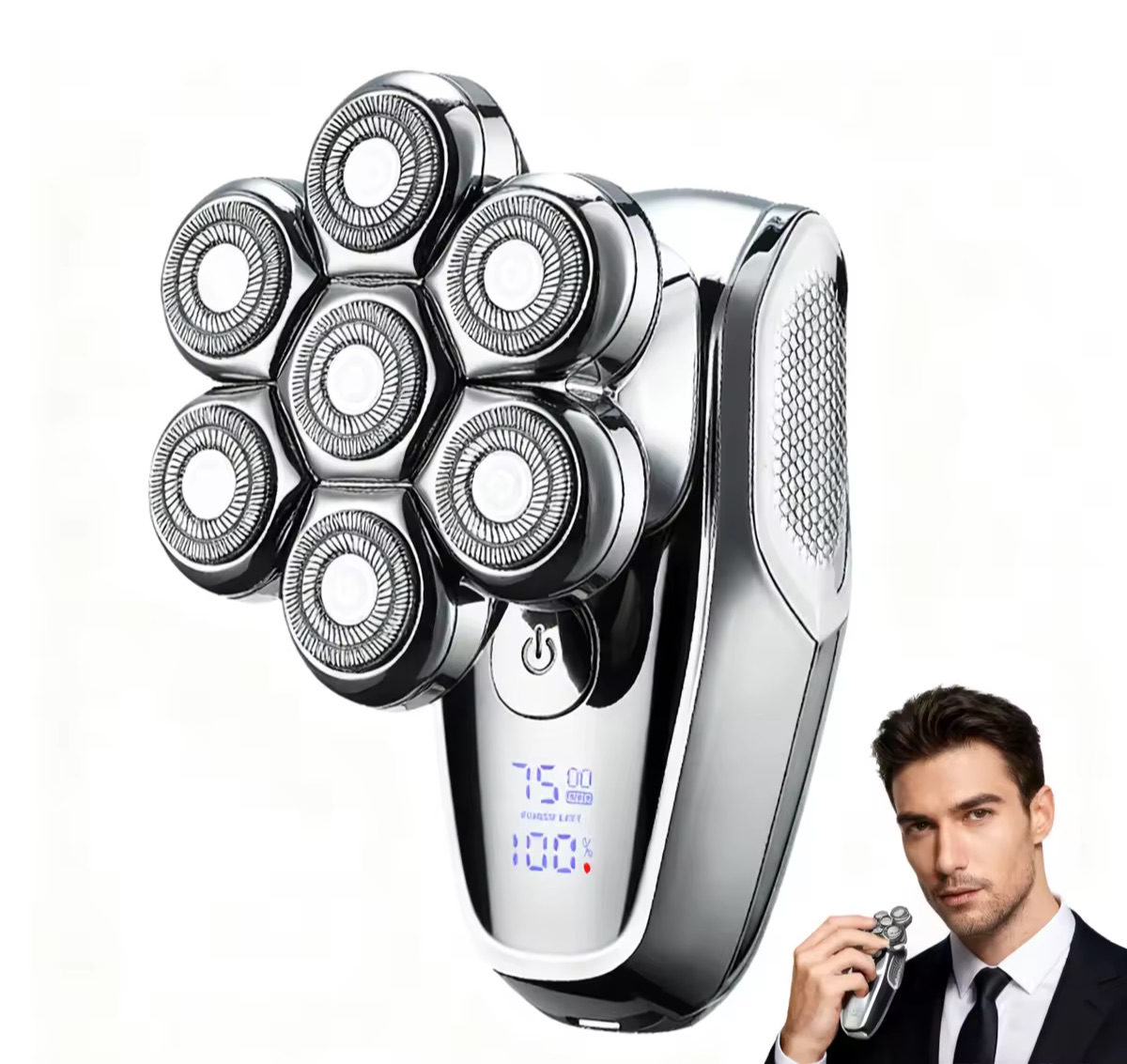 💖Електробритва оснащена плаваючим лезом у 7 напрямках, а надгнучка ротаційна бритва 7D може регулювати контури голови, обличчя, шиї та навіть підборіддя.