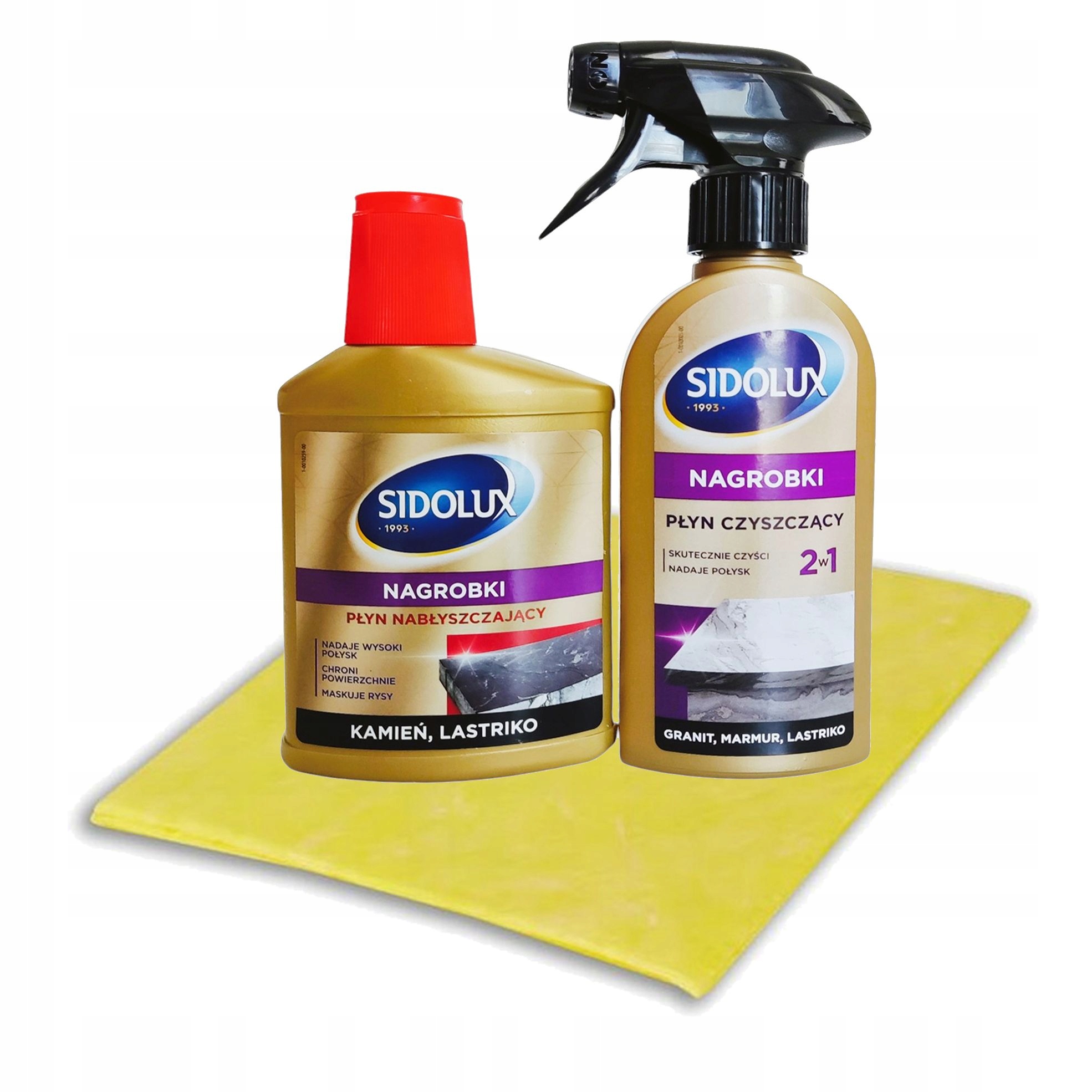 Очистіть поверхню за допомогою молока Sidolux для очищення надгробних каменів. Потім нанесіть на поверхню продукт, рівномірно розкладіть його по всій тарілці і дайте йому висохнути. Для отримання високого блиску ви повинні застосувати 2-3 шари до пам’ятника/каменю. Не забудьте застосувати наступні шари лише тоді, коли покриття сухе.