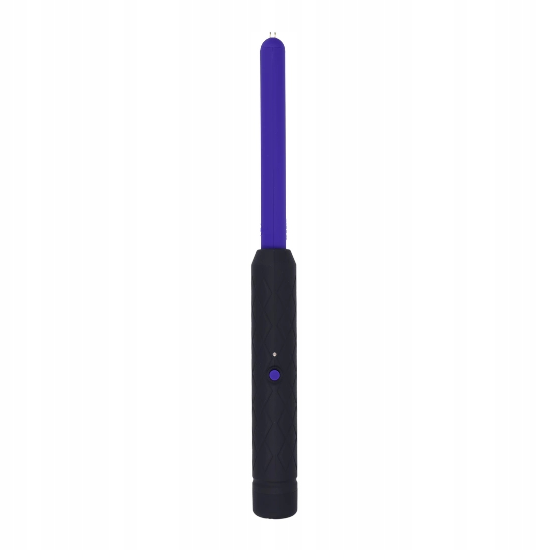 Рукоятка Stinger має нековзку, непровідну гумову рукоятку, і безпечний, але потужний струм тече між двома зубцями на кінці контрастного фіолетового стрижня.