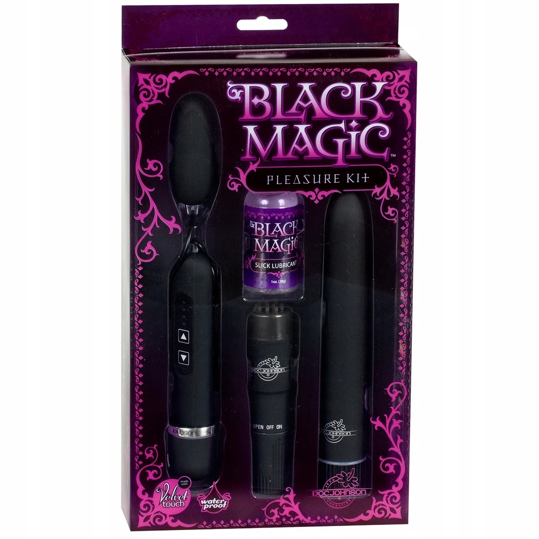 Док Джонсон розкриває набір чорної магії, вражаюча колекція шовковистих, гладких, чорних вібраційних предметів задоволення, які хвилюють і захоплюють.