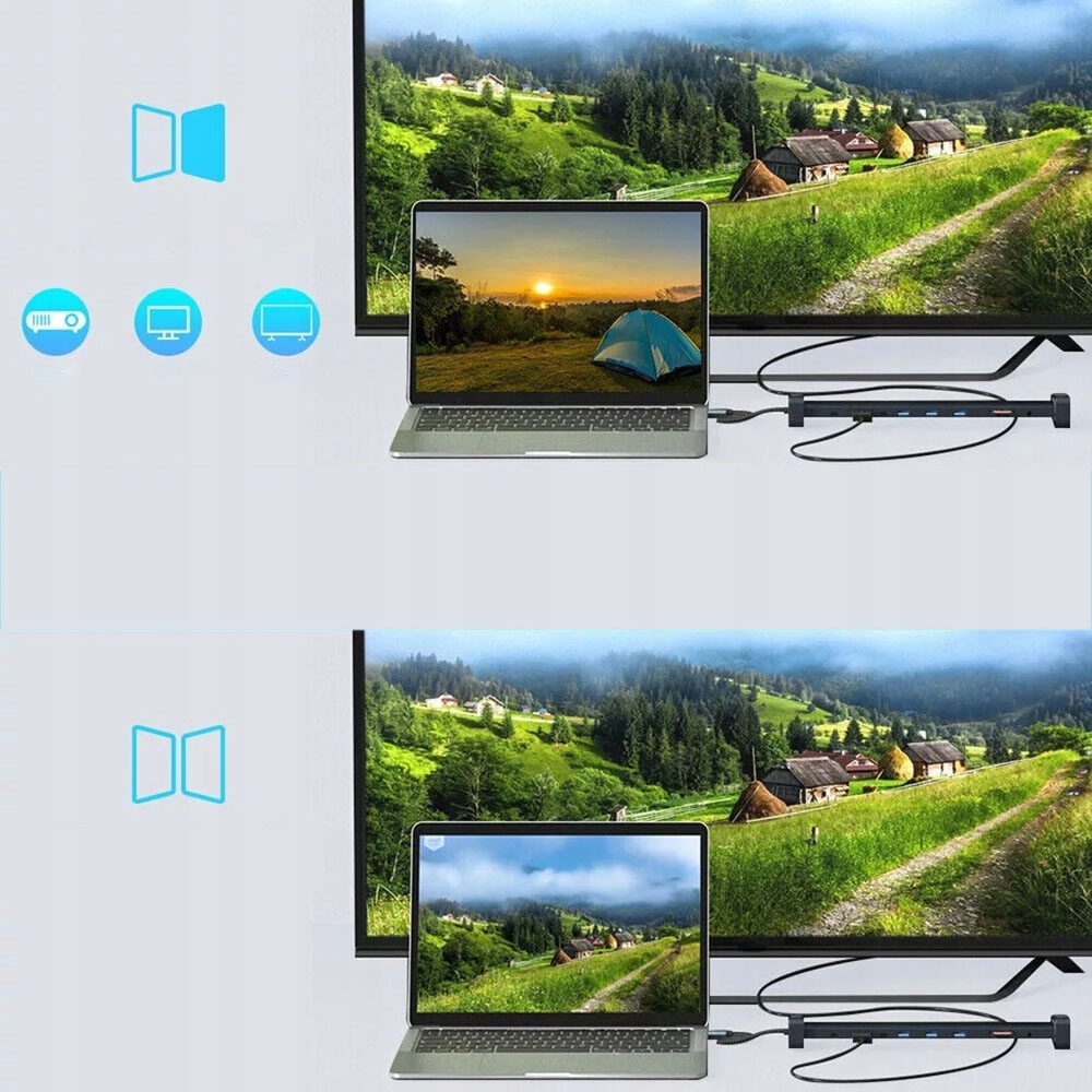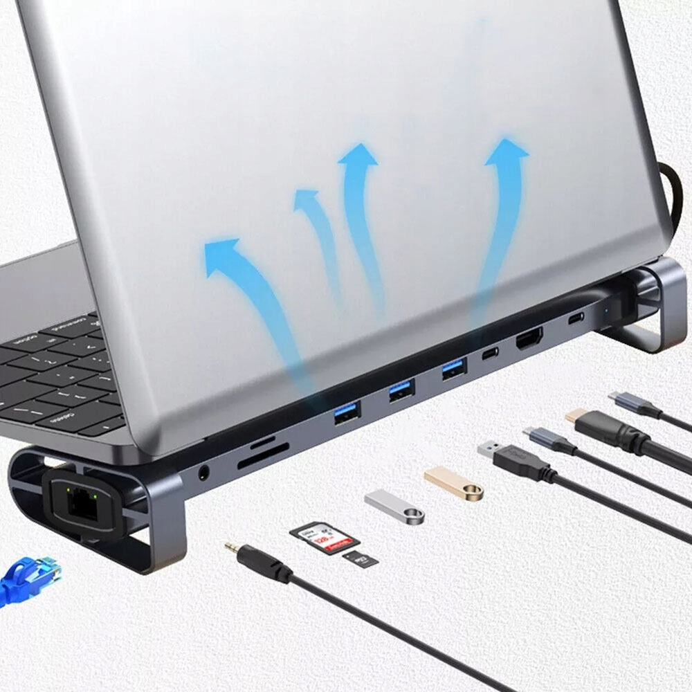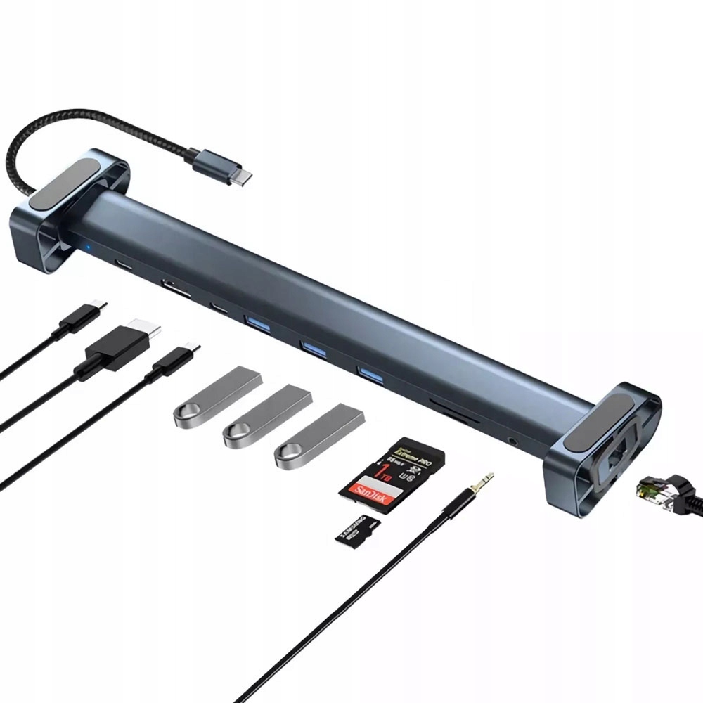 1. Цей адаптер USB-C має десять інтерфейсу в одному, включаючи дотримання типу-C HDMI, 3 порти USB 3.0, порт Ethernet RJ45, порт зарядки PD, аудіо-інтерфейс та AV Video, SD та зчитувач карт TF та 3,5 мм роз'єм для навушників. Адаптер HUBA приймає інтерфейс чоловічого типу-C з кабелем довжиною 14 см, який можна легко підключити до комп'ютера або інших пристроїв. Док -станція забезпечує три порти USB 3.0, підтримує швидкість передачі до 5,0 Гбіт/с (640 Мб/с) і дозволяє швидко передати дані. Він також оснащений портом Ethernet RJ45 для дротового мережевого з'єднання. Крім того, він також підтримує читання карт пам'яті SD та TF