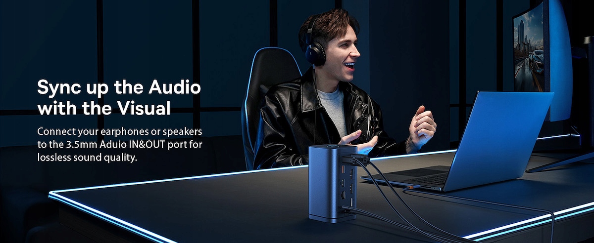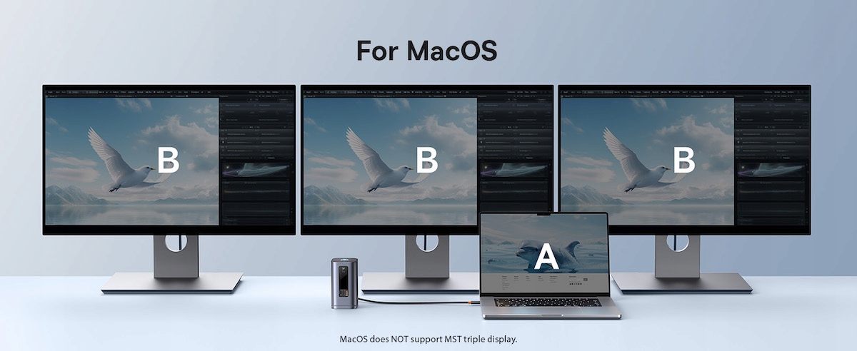 док-станція підтримує 3 монітори, розширюючи ваші враження від перегляду з приголомшливою роздільною здатністю 4K через HDMI та DisplayPortдля покращеної багатозадачності. Наша док-станція для ноутбука оптимізує вашу роботу завдяки професійним візуальним можливостям.