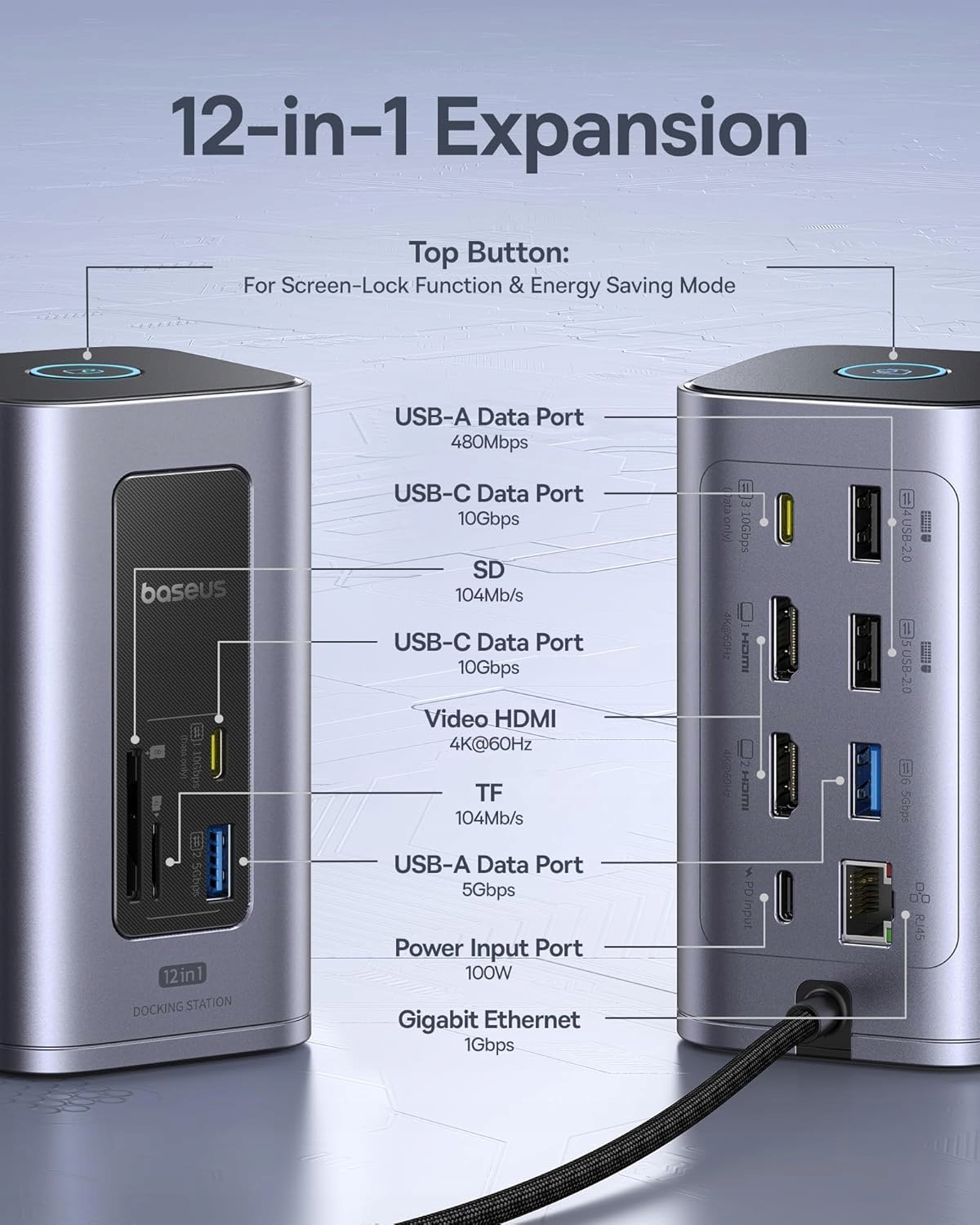 Док-станція Baseus USB-C, Nomos Air 12 в 1 HDMI 4K 100 Вт PD
