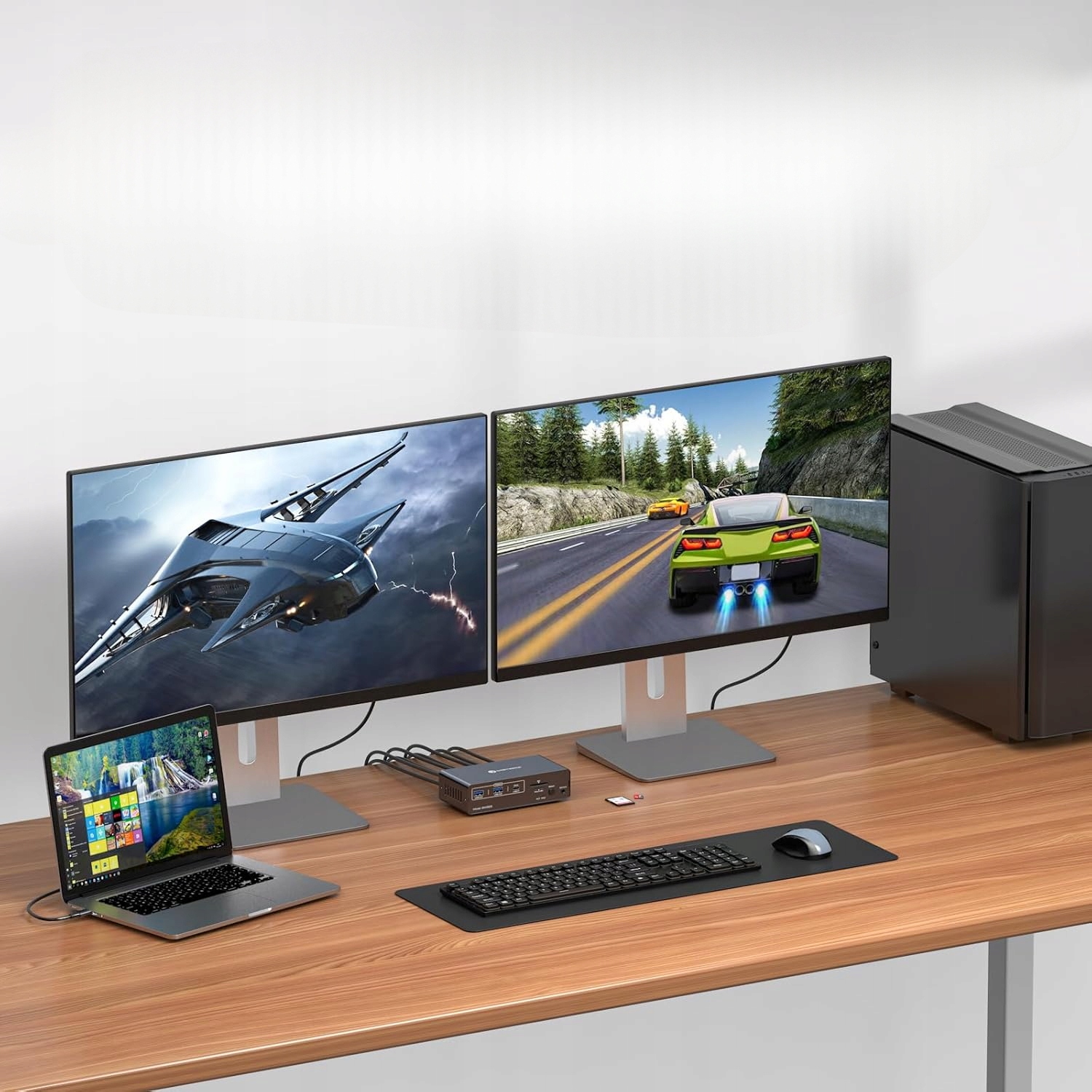 - Монітори KVM Switch 2 PC 2. Док-станція може одночасно відображати максимум два відеозображення 4K120Hz і має зворотну сумісність із 4K60Hz і 1440P, 1080P тощо. Для отримання найвищої роздільної здатності переконайтеся, що всі пристрої та кабелі підтримують відповідну роздільну здатність, а загальна довжина вхідного та вихідного кабелю не перевищує 3 м.