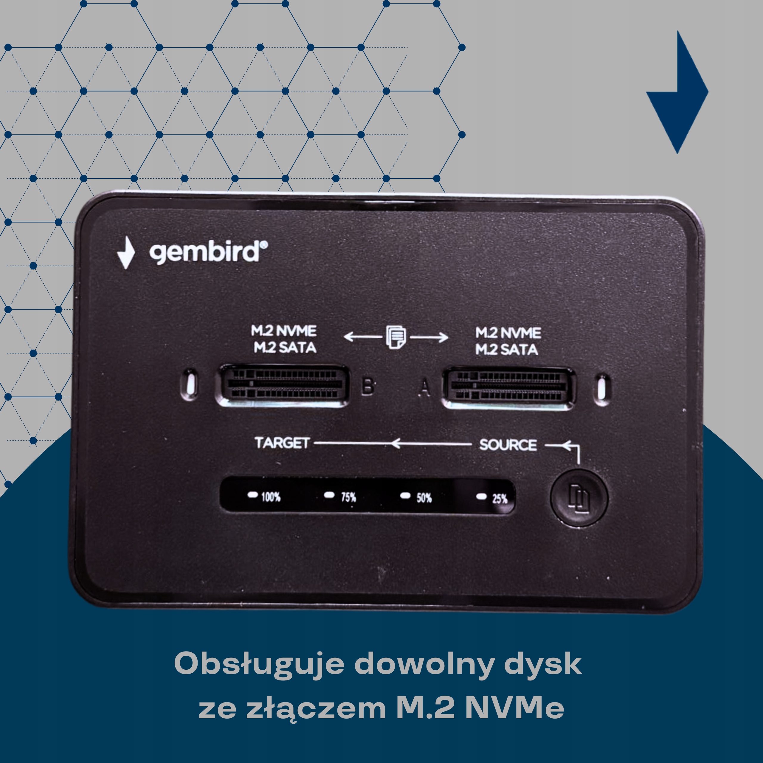 Док-станція для NVME / SATA M.2 900 МБ/с USB 3.2, клонування SSD