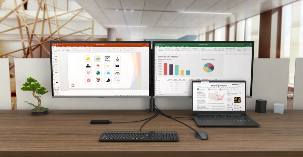 Офісна док-станція USB-C із підтримкою до 2 зовнішніх моніторів із роздільною здатністю 4K. Док-станція сумісна з будь-яким ноутбуком, оснащеним портом USB-C або Thunderbolt 3. Шість USB-портів, надійне та швидке підключення до корпоративної мережі завдяки вбудованому порту LAN та можливість встановлення за монітором VESA роблять док-станцію станція ідеальний партнер для професіоналів. Звичайно, станція може заряджати ноутбук або планшет потужністю до 100 Вт. Вбудований новітній протокол DP 1.4 підтримує роздільну здатність 5K / 60 Гц, що робить пристрій придатним навіть для професійних графічних дизайнерів, аналітиків даних, відеоредакторів і, звісно, шанувальникам HD-фільмів. p>