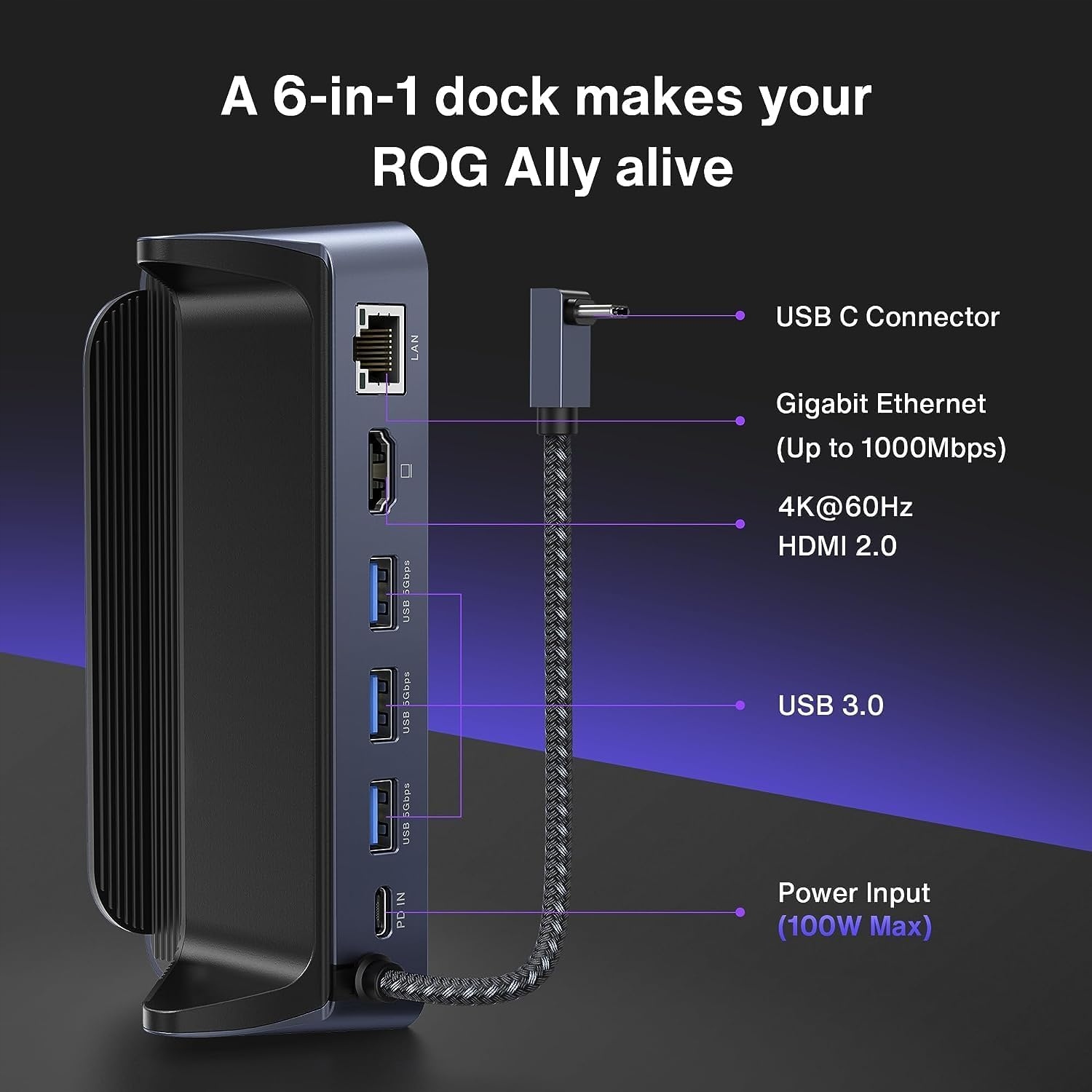 IVANKY 8-в-1 ROG Ally Dock з HDMI 2.1 4K@120 Гц, 1 Гбіт/с Ethernet, 3 * USB-A 3.0, 100 Вт USB-C зарядка, док-станція, сумісна з ASUS ROG Alloy/Lenovo Legion go/Valve Steam Deck