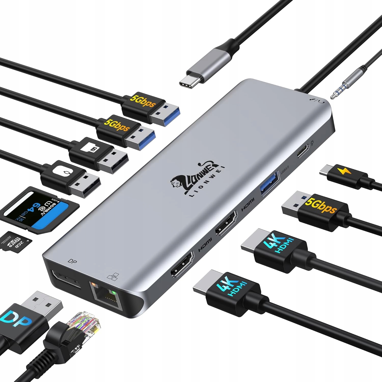 Док-станція LIONWEI USB-C для двох моніторів, 2 порти HDMI, 13 в 1