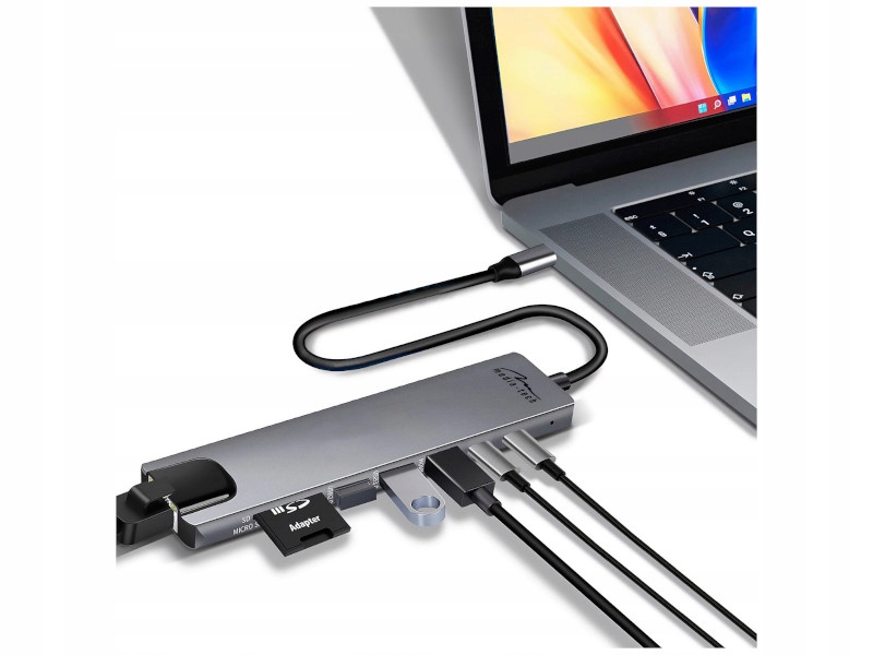 БАГАТОФУНКЦІОНАЛЬНА ДОК-СТАНЦІЯ USB 8 В 1 GIGA LAN ХАБ USB-A USB-C RJ45 HDMI