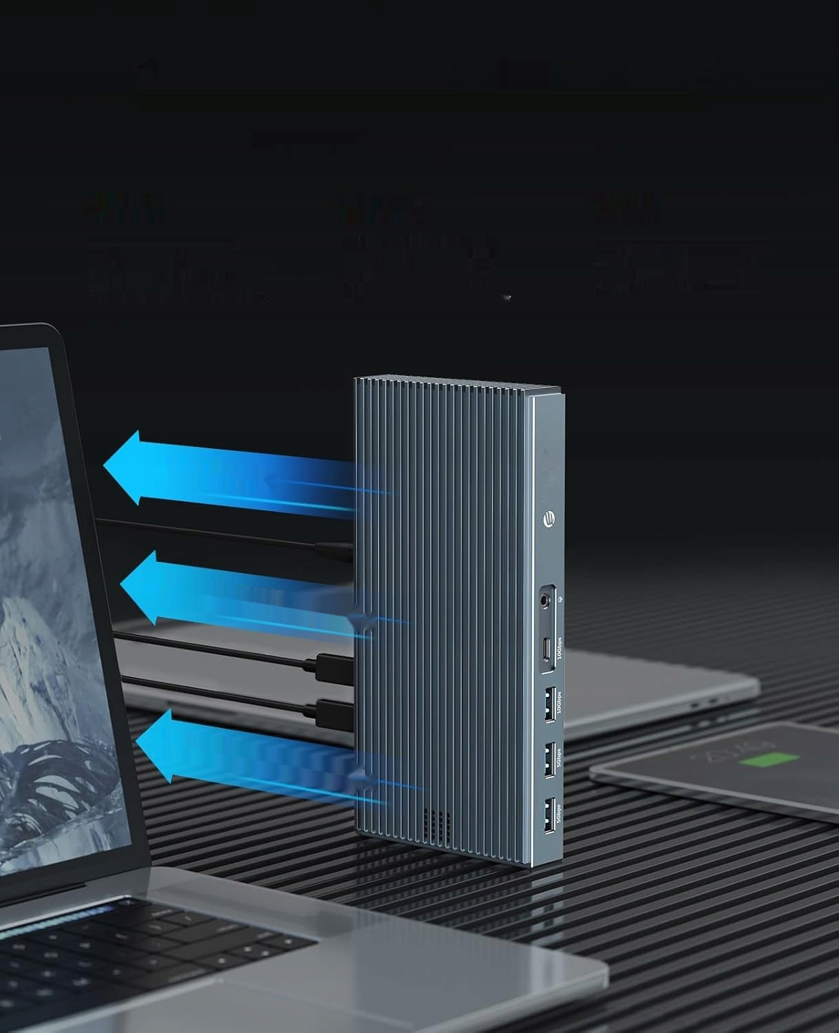 - Універсальні порти: док-станція перетворює один порт USB-C на кілька інтерфейсів, зокрема 2 порти Thunderbolt 3, 1 порт DP1.4 із роздільною здатністю 8K@60 Гц, 1 порт USB-A та USB - C із пропускною здатністю 10 Гбіт/с і додатковими портами USB і Ethernet.