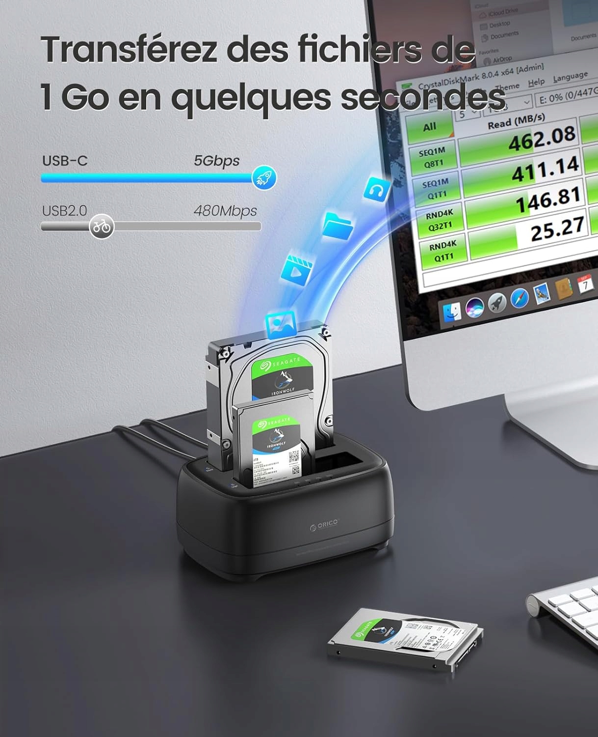 - 【Універсальна сумісність】Док-станції для жорстких дисків ORICO SATA універсально сумісні з Windows XP / Vista / 8 / 10 / 11 / Mac OS / Linux. Зверніть увагу, що він підтримує лише SATA HDD/SSD.