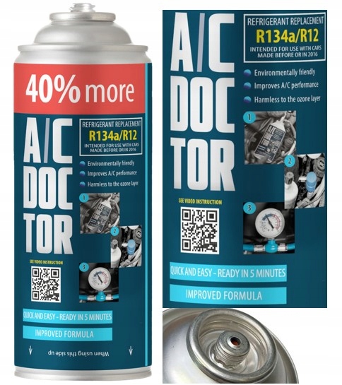 AC Doctor R134A XL - це холодоагент, який є еквівалентом газу R134A. CAN містить 235 г газу, це відповідає 626 г коефіцієнта R134A. Наш продукт, розроблений для якості та продуктивності, забезпечує надійну дію та сумісність з усіма нафтами та газами , присутнім у системах кондиціонування. Крім того, наш може підходити до кабелів EasyKlim та Actogo.