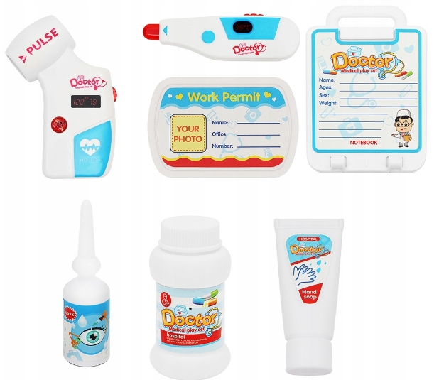 - Барвистий набір викличе у дитини бажання пограти в лікаря, а завдяки багатоелементному набору аксесуарів дитина ознайомтеся з медичними інструментами.