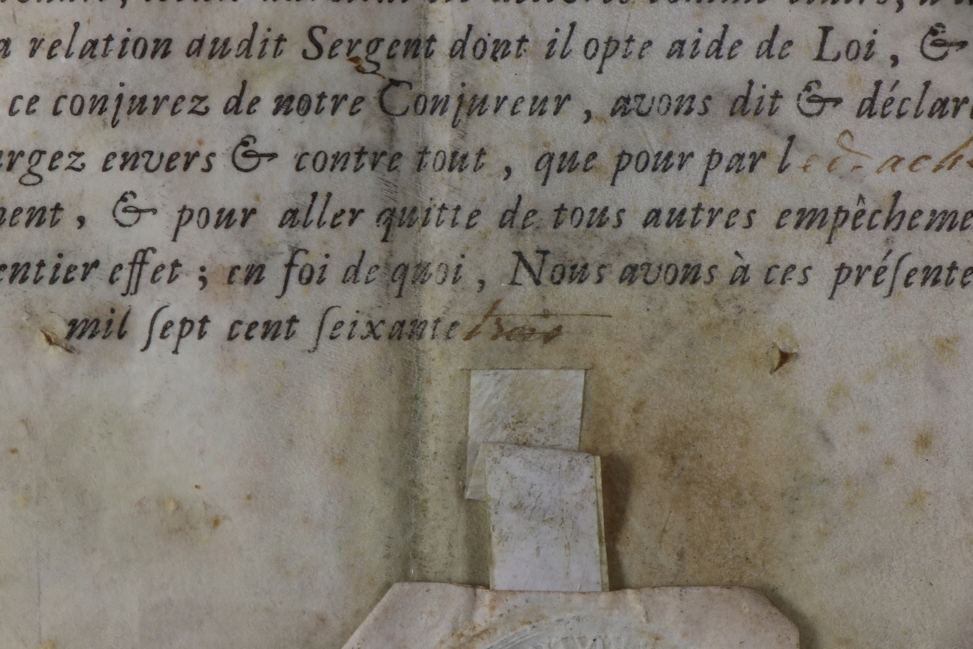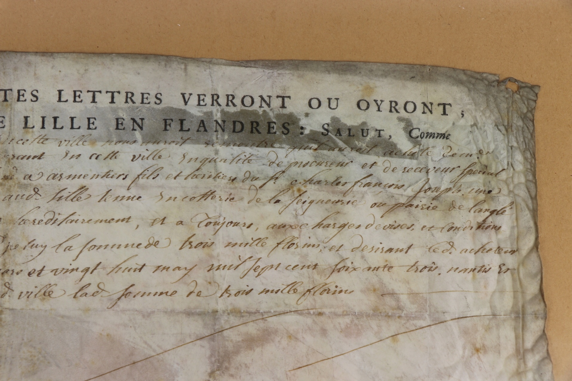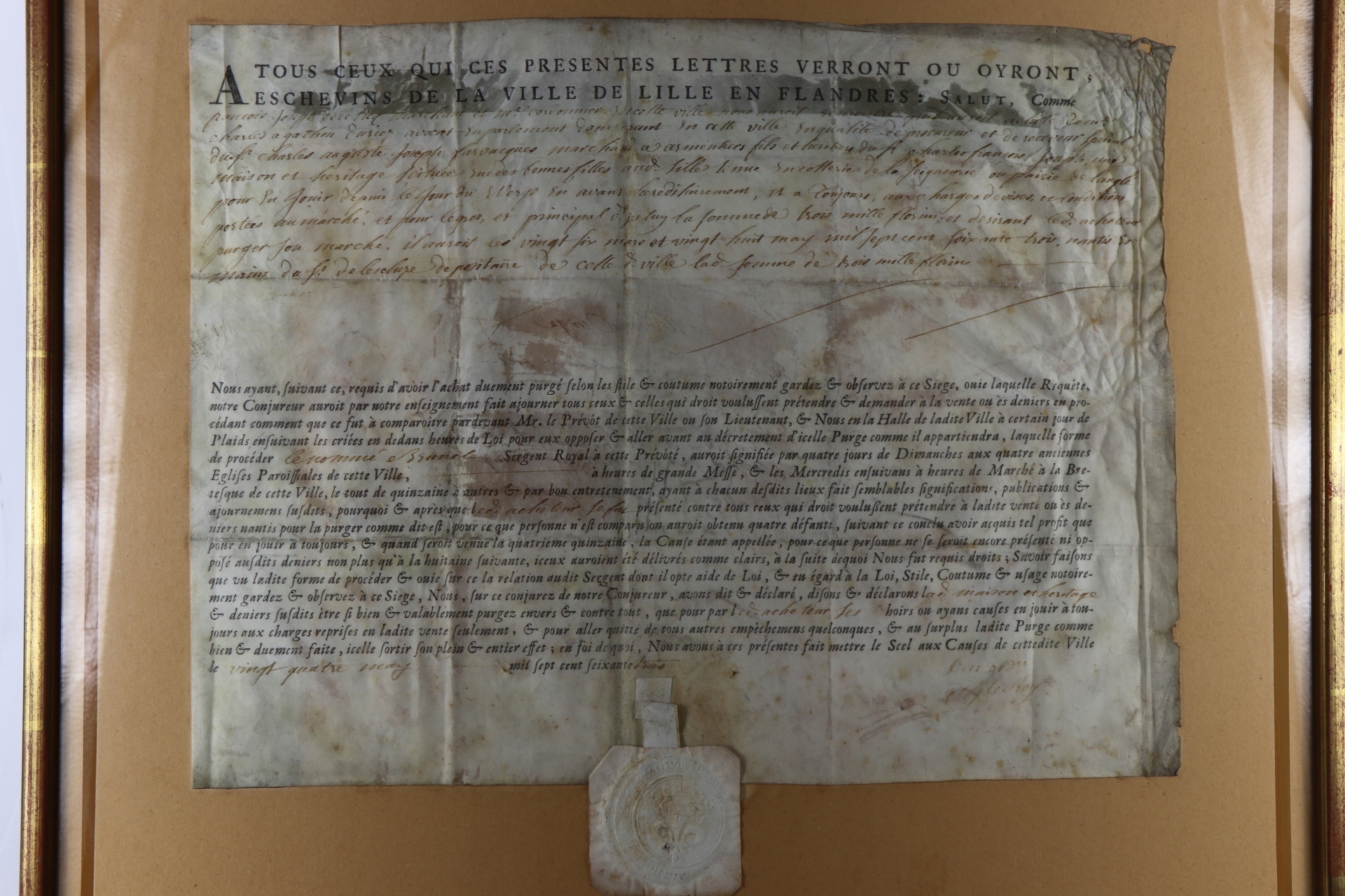 Документ про право власності на місто Лілль, Франція 1763 р