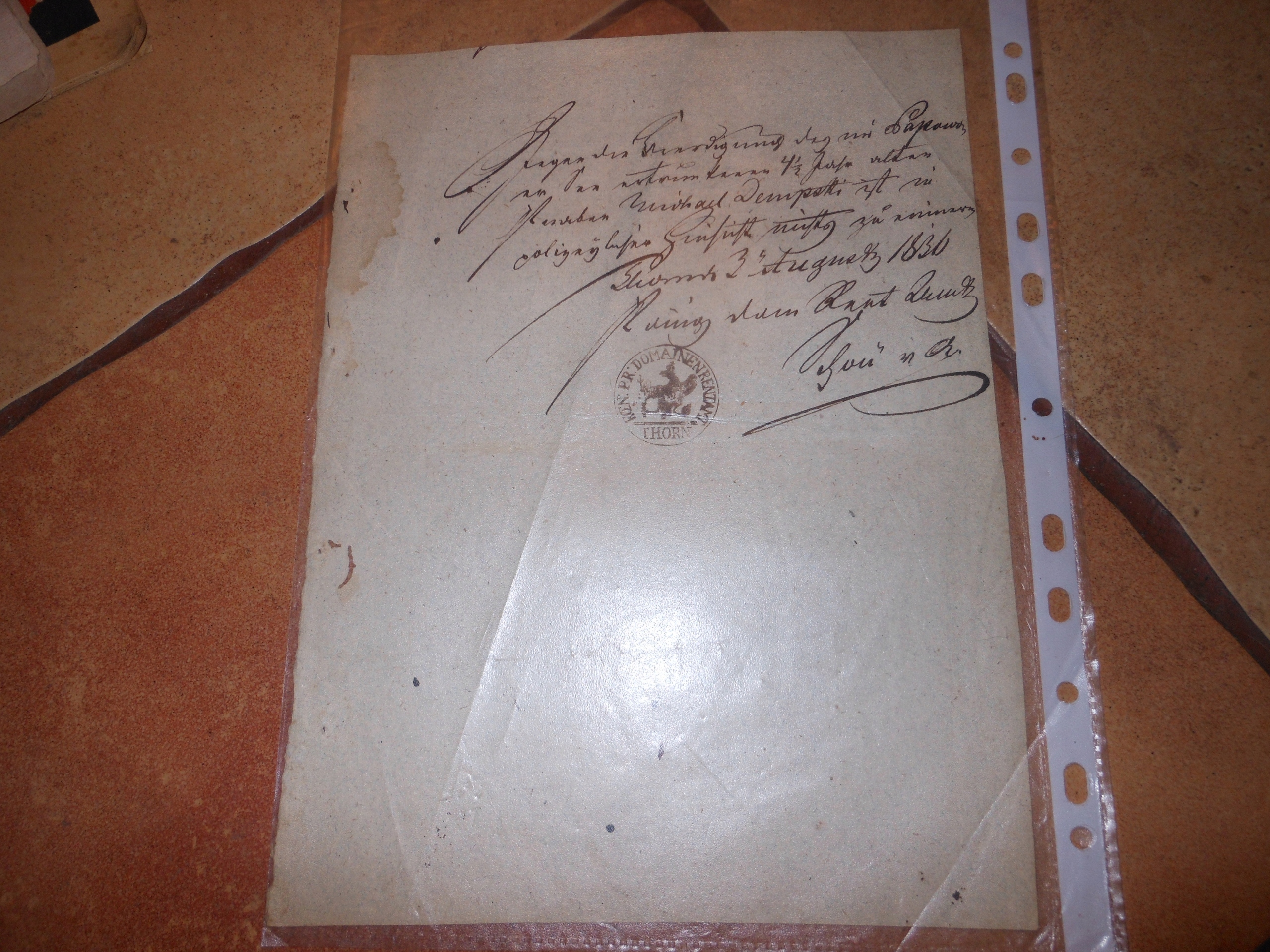 DOKUMENT Z PIECZECIĄ TORUŃ 1836