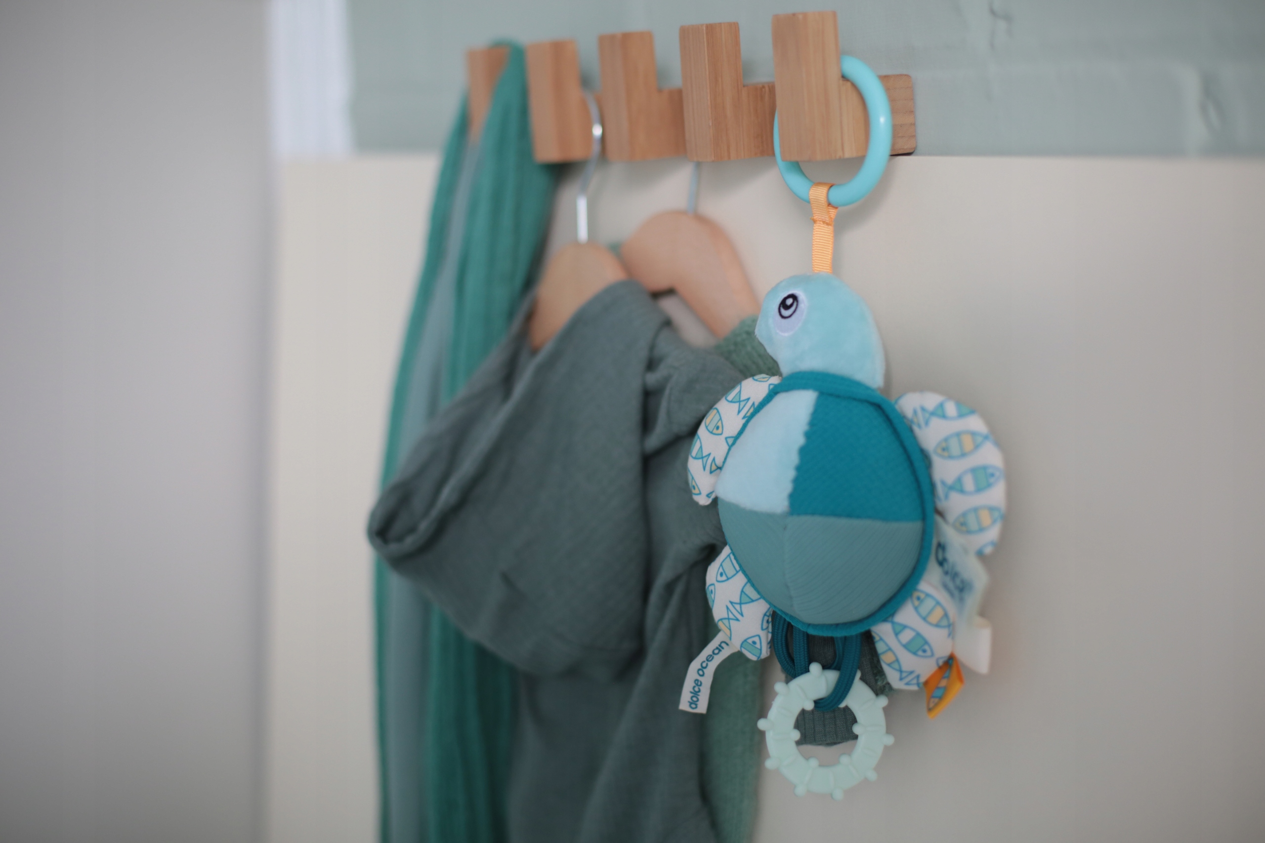 Морська черепаха Фліппі — це підвіска для коляски, автокрісла або ліжечка та м’яка сенсорна іграшка в одному.