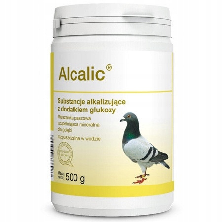 Alcalic - це водорозчинна допоміжна суміш для голубів, що містить підщелачуючі речовини з додаванням глюкози. Ці інгредієнти допомагають відновити водно-електролітний і кислотно-лужний баланс, порушений у спортивних голубів.