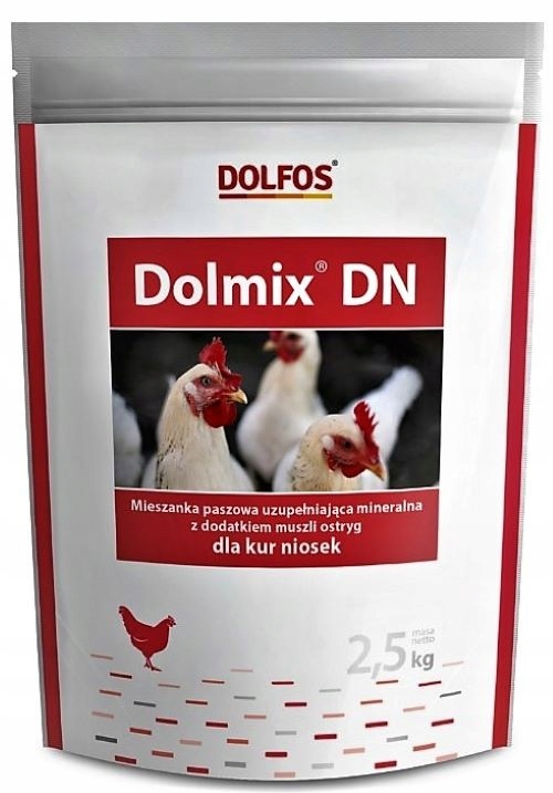 - Властивості: суміш, яка містить комплекс вітамінів, амінокислот, макро- і мікроелементів, необхідних для повноцінної життєдіяльності та продуктивності курей-несучок. Містить мушлі устриць як одне з джерел кальцію, що забезпечує хороше формування та твердість яєчної шкаралупи. Долмікс ДН підвищує продуктивність несучості, посилює забарвлення жовтків, запобігає дефіцитним станам і позитивно впливає на загальний стан птиці